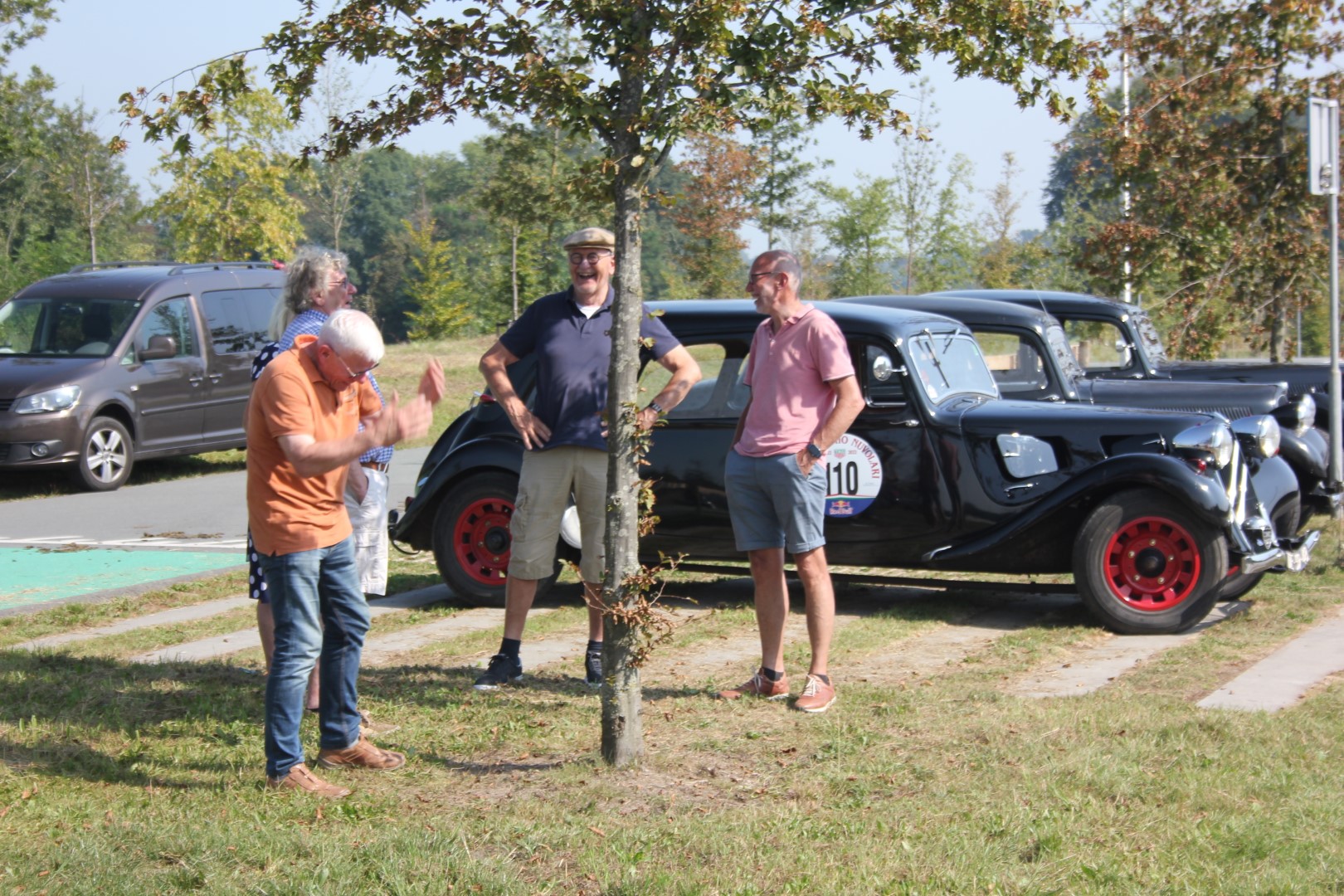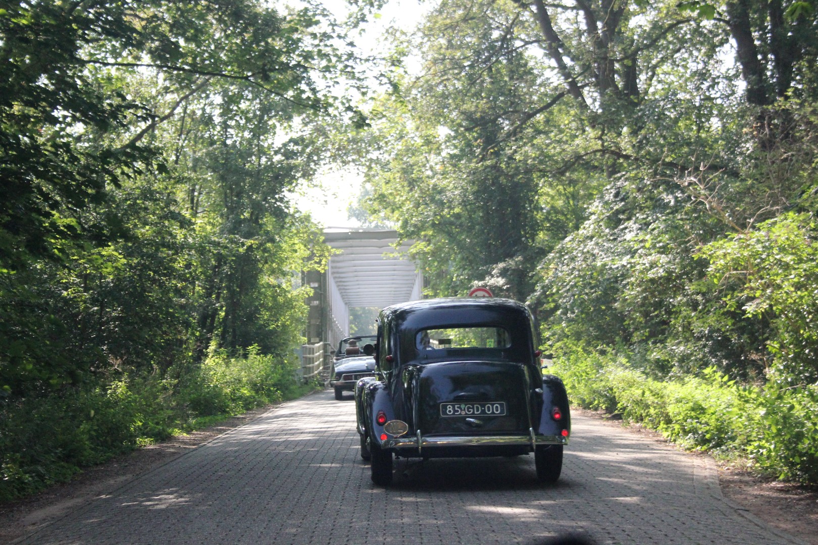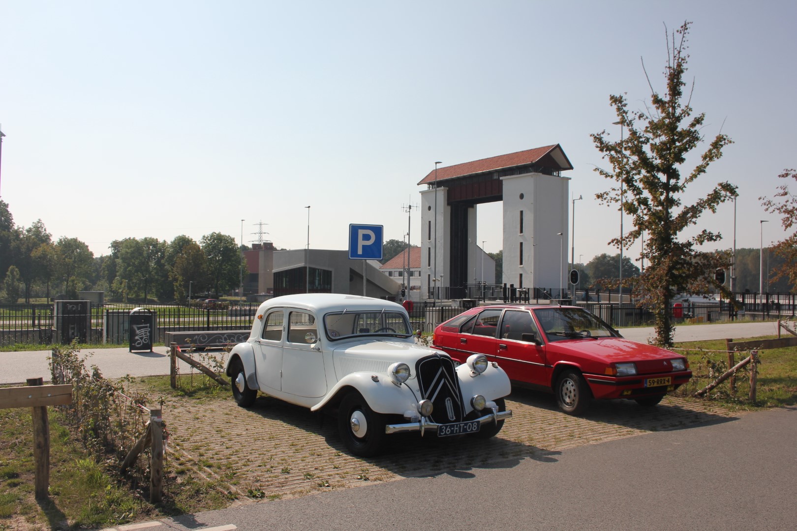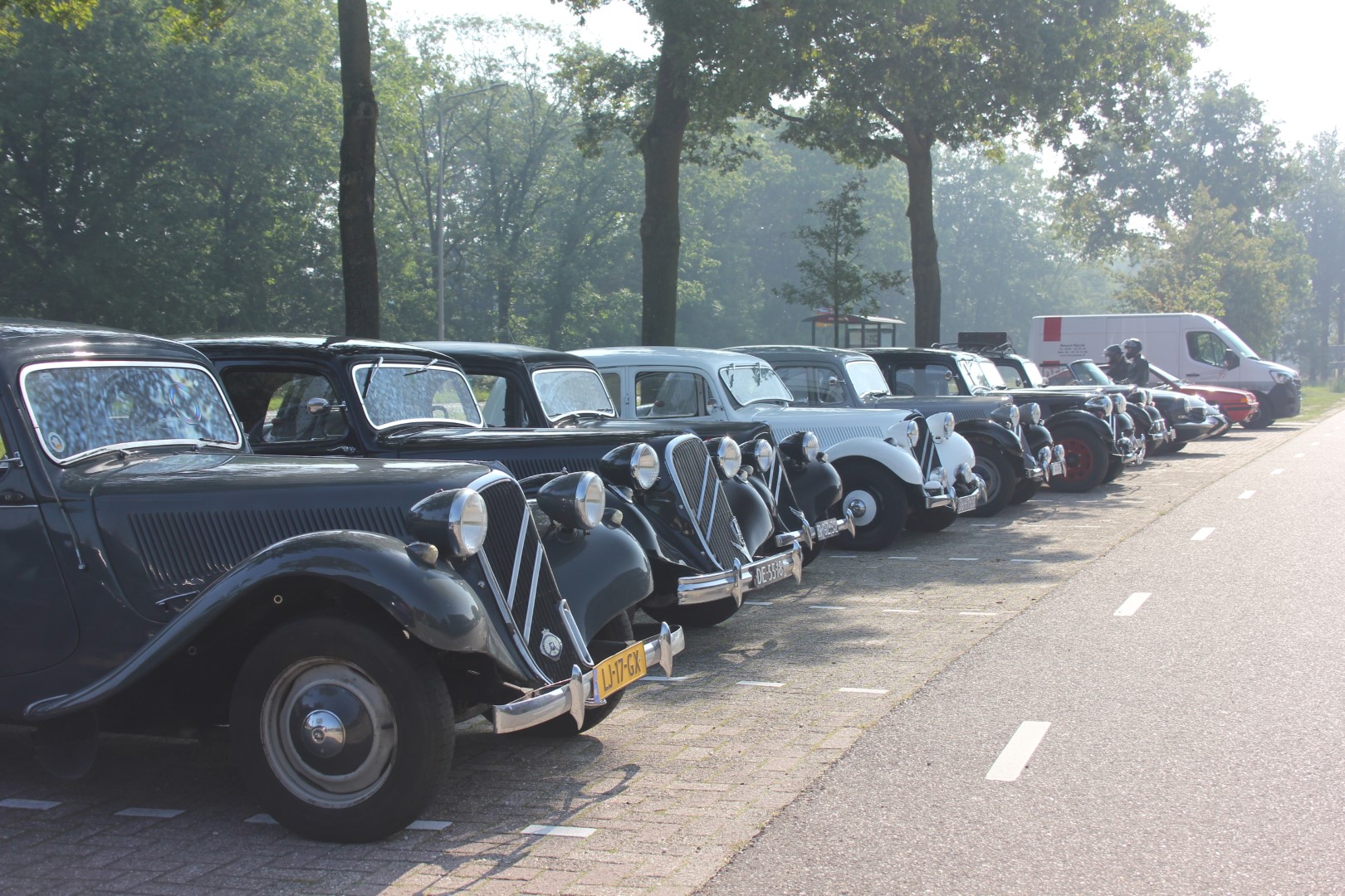 Het vorige verslag eindigde met een wens voor beter weer de volgende keer. Ik had om iets minder moeten vragen, want het was haast té warm afgelopen zaterdag. Net terug van vakantie besloot ik last minute toch maar aan te sluiten bij deze activiteit, het vertrekpunt was tenslotte toch om de spreekwoordelijke hoek. Ik had alleen geen tijd om de Traction nog op te halen in Azelo, dus men moest tegen een iets minder oude Citroën aan kijken. Ik heb me braaf achteraan uit het zicht van iedereen gehouden.
