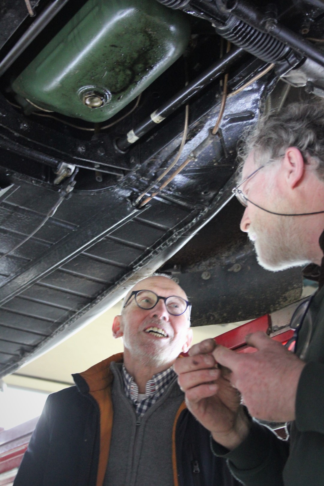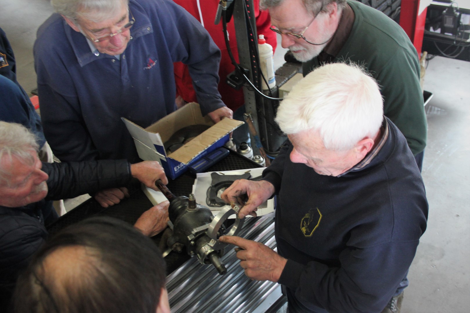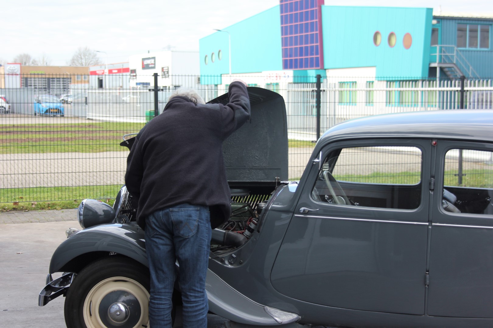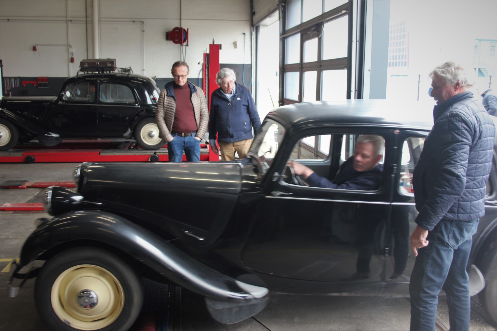Met koffie en koek werden de berijders van de Tractions ontvangen in de werkplaatskantine. De eerste klussen werden voorbereid. Fred kon zich niet inhouden en was met zijn startmotor al in de weer in de werkplaats, om ervoor te zorgen dat deze niet meer zou blijven hangen en de auto weer soepel zou starten.