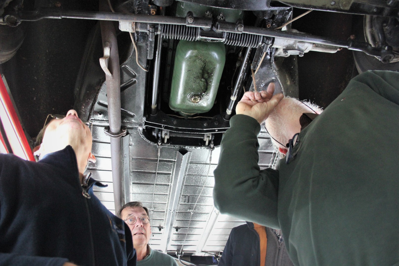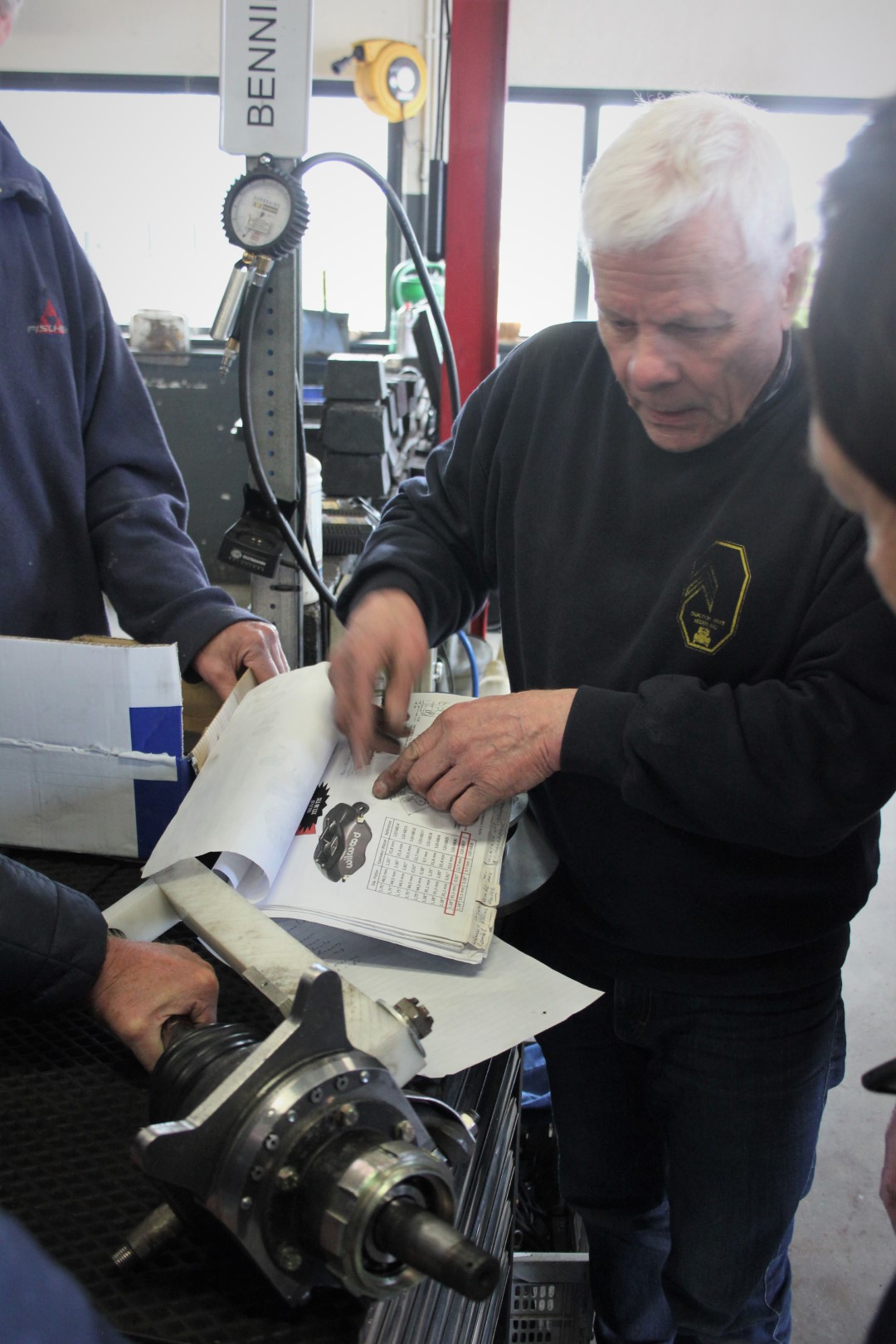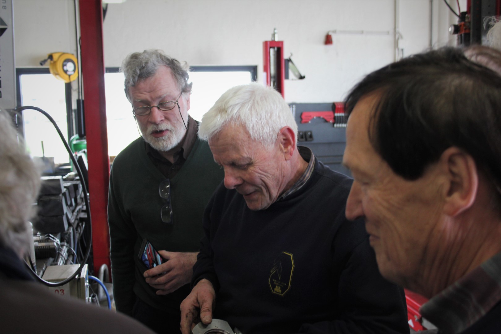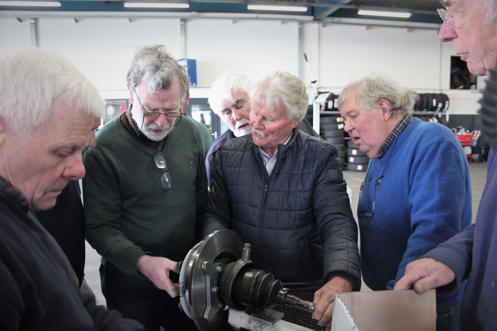 Met koffie en koek werden de berijders van de Tractions ontvangen in de werkplaatskantine. De eerste klussen werden voorbereid. Fred kon zich niet inhouden en was met zijn startmotor al in de weer in de werkplaats, om ervoor te zorgen dat deze niet meer zou blijven hangen en de auto weer soepel zou starten.