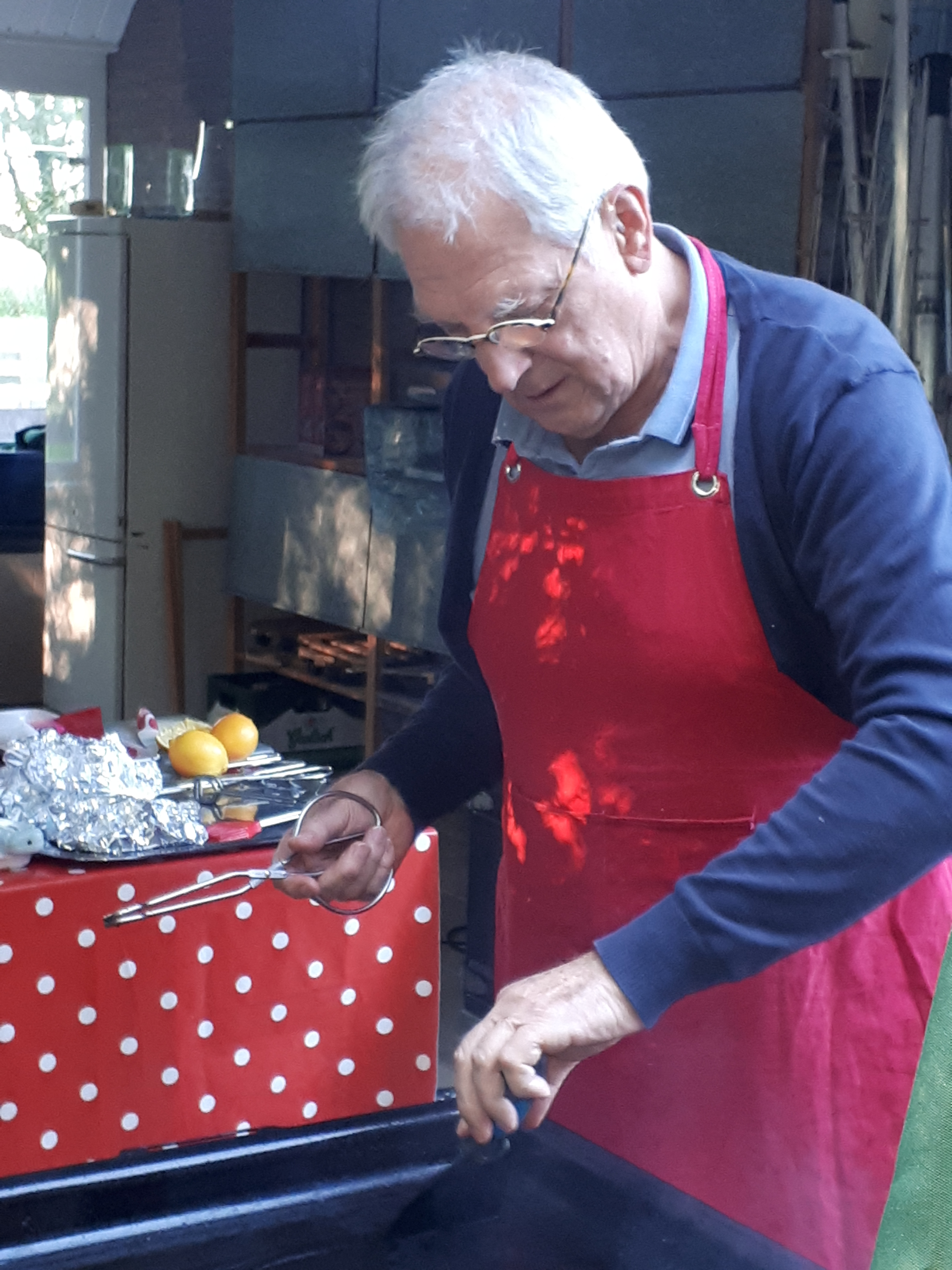Hans onze gastheer trok een mooi schort aan en ontpopte zich als een ware kok.