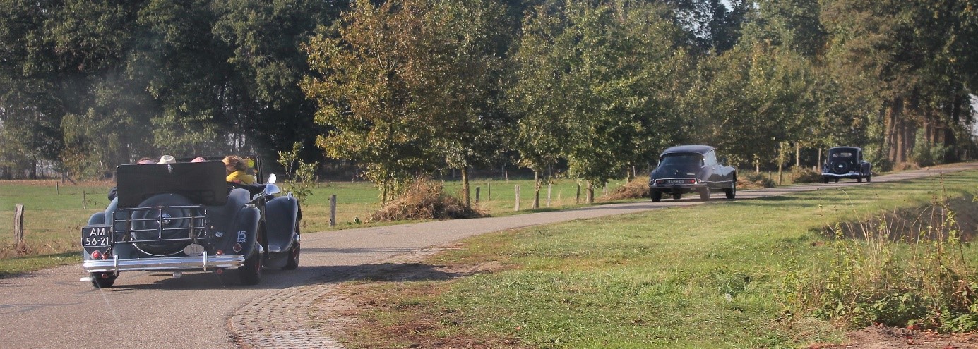 Tijdens de rit reed ik achter André en Frans aan, terwijl mijn bijrijdster een poging deed om foto’s te schieten van de kleine karavaan. De DS die ertussen piepte werd als merkgenoot oogluikend toegelaten. Het was een mooie route, waarbij uiteraard een keer het onvermijdelijke moest gebeuren: Er werd een verkeerde afslag genomen. Ik was zo dom om achter mijn voorganger aan te rijden terwijl mijn lieftallige bijrijdster (achteraf terecht) zei dat we de andere kant op moesten. Na met zijn allen omgekeerd te zijn heb ik moeten beloven voortaan weer naar haar te luisteren…