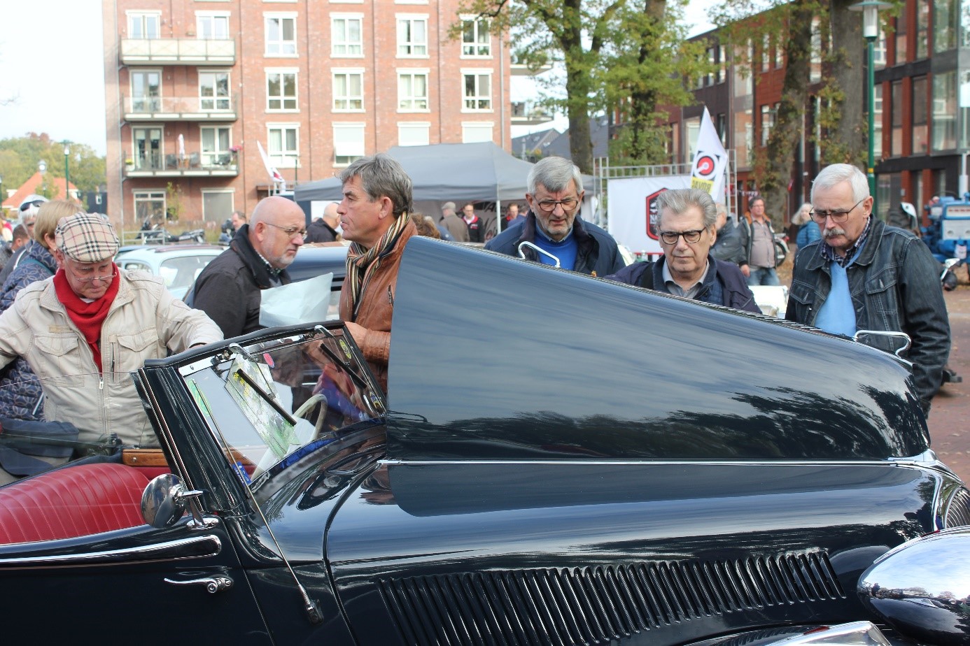 De auto’s werden voorzien van TAN-flyers ter promotie en over belangstelling hadden ze zeker niet te klagen! Onze jarige(!) voorzitter was zo slim om de motorkap van zijn Six te openen, waardoor hij de kijkers met of zonder verstand van de techniek haast van zich af moest slaan: