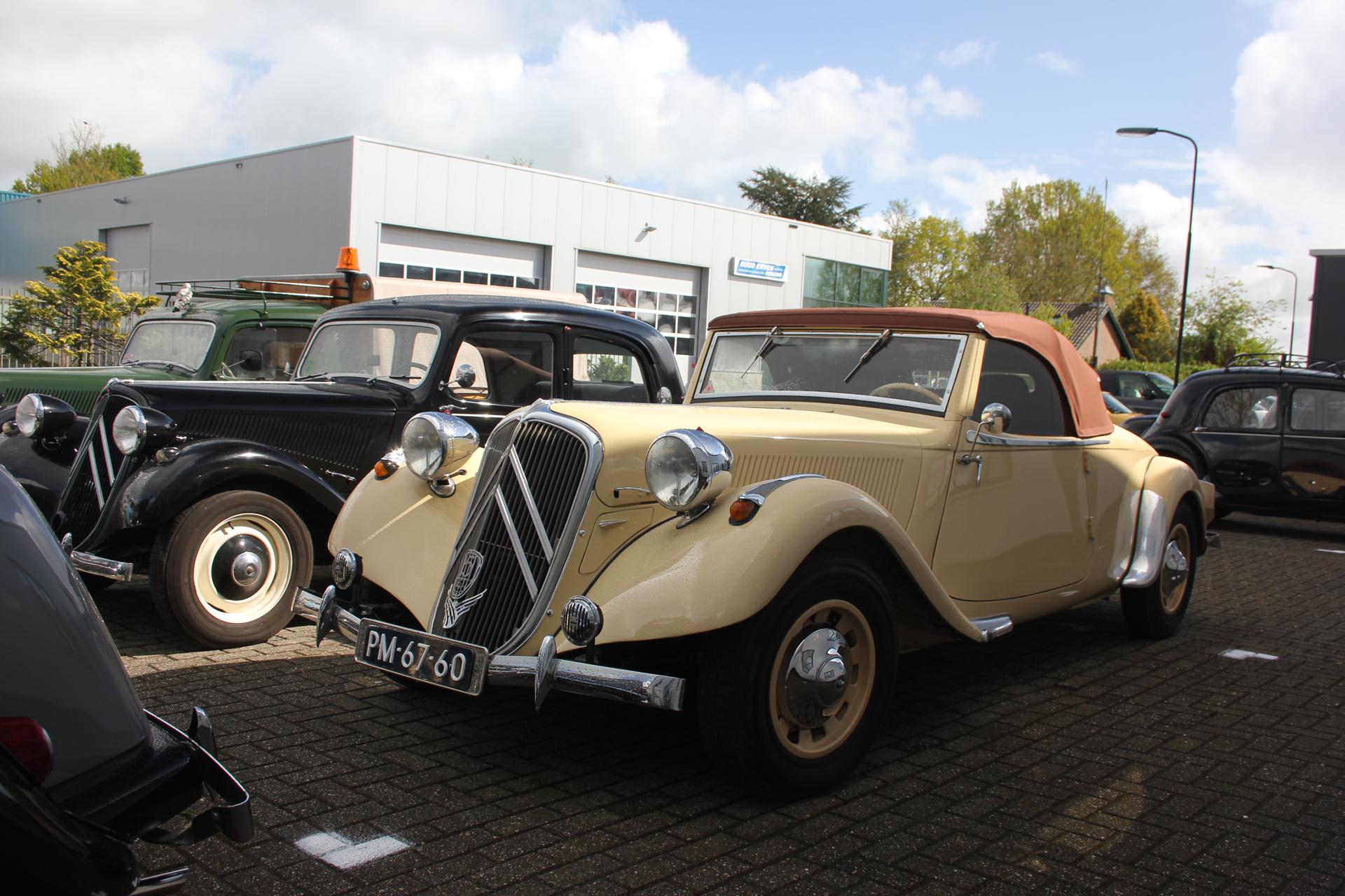 Al met al staat daar dus een bezienswaardigheid die je gezien moet hebben, als liefhebber van Frans oud staal. Daarom togen 8 Tractions en 1 DS op 20 april vanuit het oosten van het land naar Buren. Enkele auto's vertrokken vanuit Twente en pikten in Salland nog wat anderen op, een andere groep verzamelde zich in de Achterhoek om bij Arnhem aansluiting te vinden bij de Twentse groep. Zelf kwam ik iets later aan, doordat mijn gereviseerde motor nog geen snelwegkilometers mocht maken.