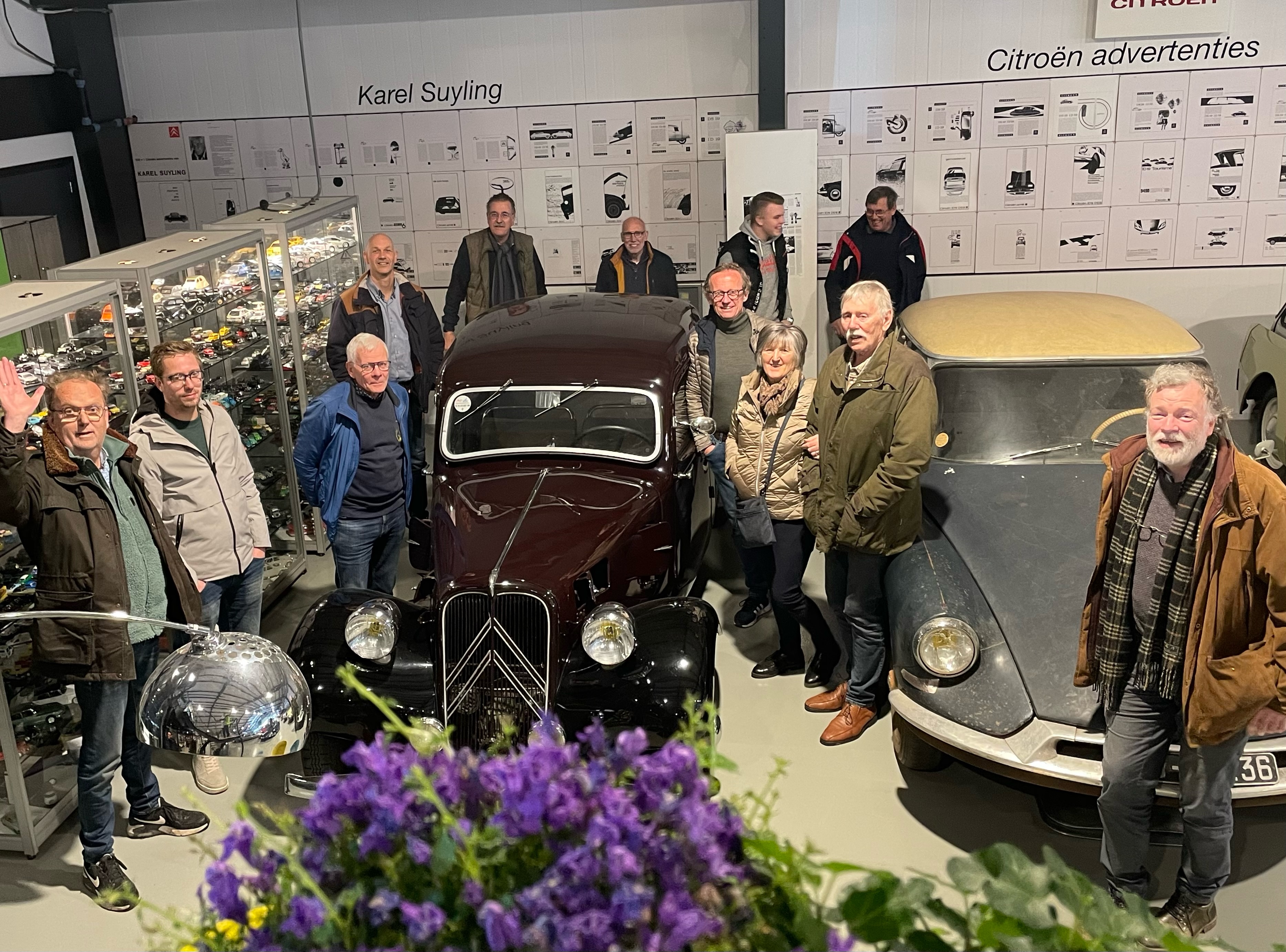 In het museum werd iedereen direct voorzien van koffie en taart, zelfs nog voordat er betaald was. Daar blijkt gastvrijheid uit! Ook werd een groepsfoto genomen rond de prachtige vroege 11CV in de hoek.