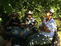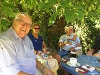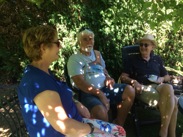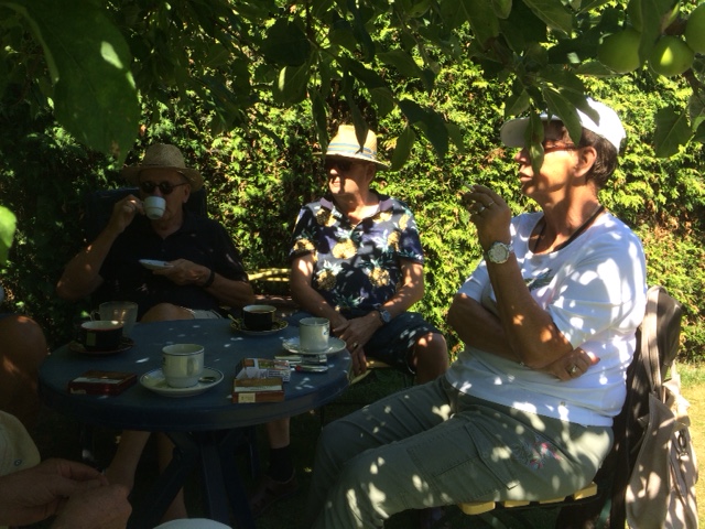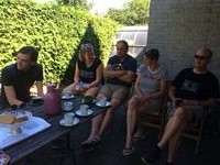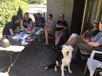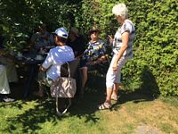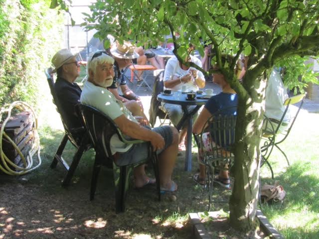 De 16 deelnemers werden (letterlijk en figuurlijk) warm ontvangen en onder de appelboom in hun heerlijke tuin getrakteerd op koffie met wat lekkers.