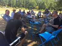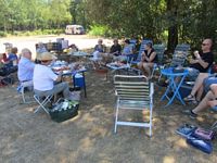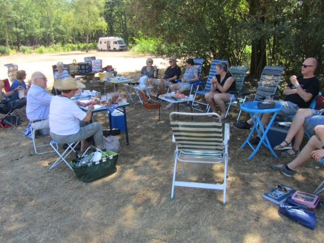 Eindpunt van de tocht was een dagcamping bij Markelo waar de - volgens goed gebruik - zelf meegenomen picknick werd gedeeld en genoten in de schaduw van een paar heerlijke grote bomen.