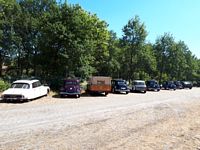 De 9 deelnemende auto's reden de prachtige route door het zonovergoten landschap, door bossen, langs akkers, volkomen onbekende gehuchtjes en soms ook een stukje door gewonere woonwijken.