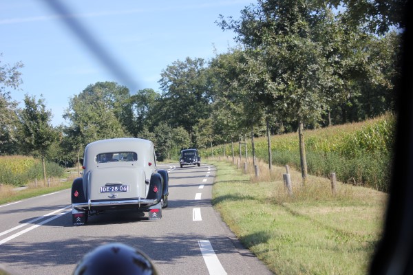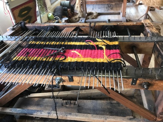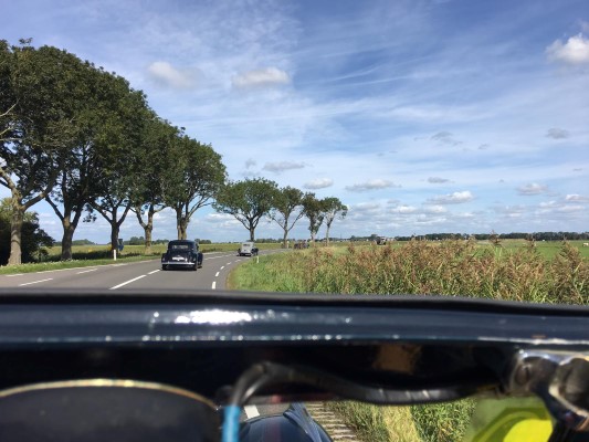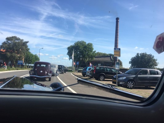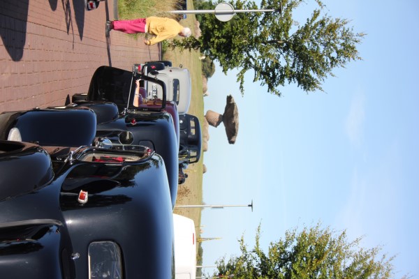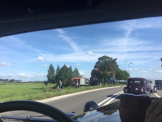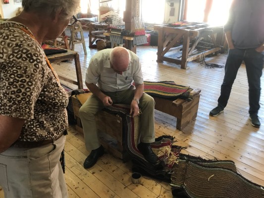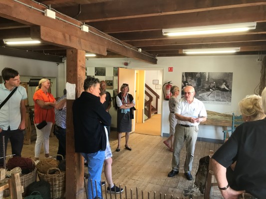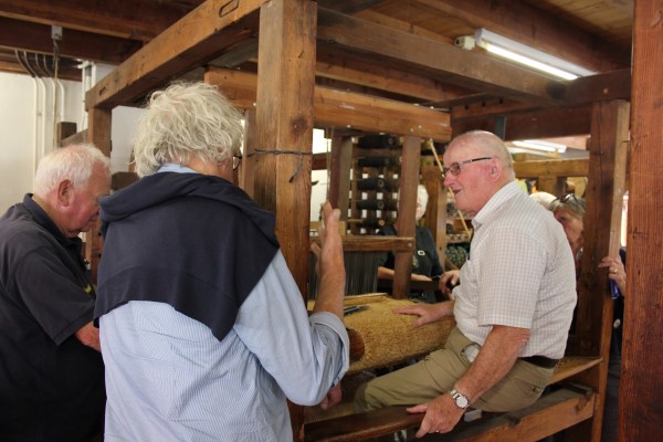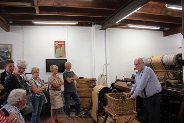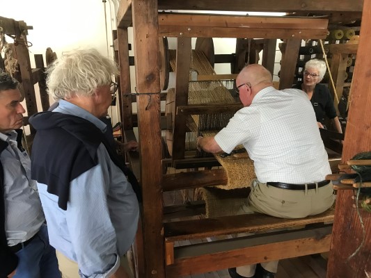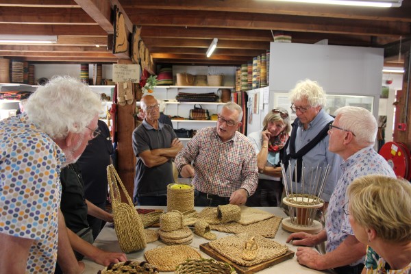 Rond 13.30 uur vervolgden we de route. We gingen naar het gezellige centrum van Genemuiden en parkeerden onze bolides op de markt, bij de haven. Voor wie wilde konden we bij de viskraam wat eten. Om 14.00 uur werden we verwacht bij het tapijtmuseum. Ook daar was alles dik in orde. We werden verwelkomd en kregen na het bekijken van een video een lekkere kop koffie. Vervolgens kregen we uitleg over de tapijtstad Genemuiden. Het bleef niet alleen bij uitleg, maar we werden ook getrakteerd op demonstraties. Zo werden er kokosmatten, biezenmatten en lopers en blokmatten gemaakt. Op dit moment komt bijna al het kunstgras uit Genemuiden.