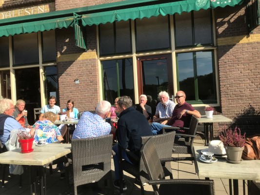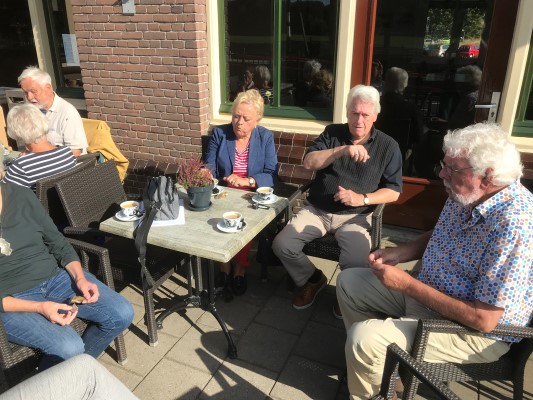 Rond 10.45 uur kwamen we aan bij het Grand Café “Het oude station” waar we een heerlijke cappuccino hebben gedronken. 15 man (en vrouw) sterk zijn we om 11.30 uur in onze auto’s gestapt om richting Genemuiden te gaan. Ik ben door plaatsjes gekomen waarvan ik het bestaan niet wist. Als je mij vraagt waar ligt Holten dan zeg ik onderaan de Holterberg. Nu weet ik dat er nog een Holten is, waar we doorheen zijn gekomen. Het buurtschap Genne, Hasselt, Mastenbroek, zomaar een paar plaatsjes en buurtschappen waar we doorheen kwamen.