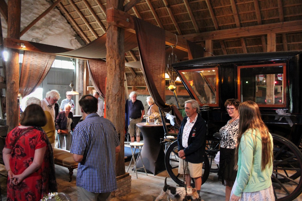 Hij gaf ons een uitgebreide presentatie over de historie van dit gebouw en hoe ze er beland zijn vanuit zijn passie voor historie en specifiek historische interieurs. De boerderij wordt beheerd door Vereniging Hendrick de Keyser, die honderden architectonisch bijzondere panden in heel Nederland onder zijn hoede heeft en rondkomt van de huur en giften. Belangrijk voor de gebouwen is dat niet alleen de buitenkant interessant is, maar dat ook het interieur origineel is gebleven. Bij Tony’s boerderij houdt dit in dat de voorkamer en opkamer letterlijk honderden jaren oud zijn, met veel kunstig houtwerk en tegeltjes gedecoreerd. Daarnaast heeft hij in de deel, tussen de honderden jaren oude versteende balken, een officieus museum ingericht. Daarin staan werktuigen uit de historie van het gebied, bijzondere koetsen en natuurlijk zijn eigen Traction.