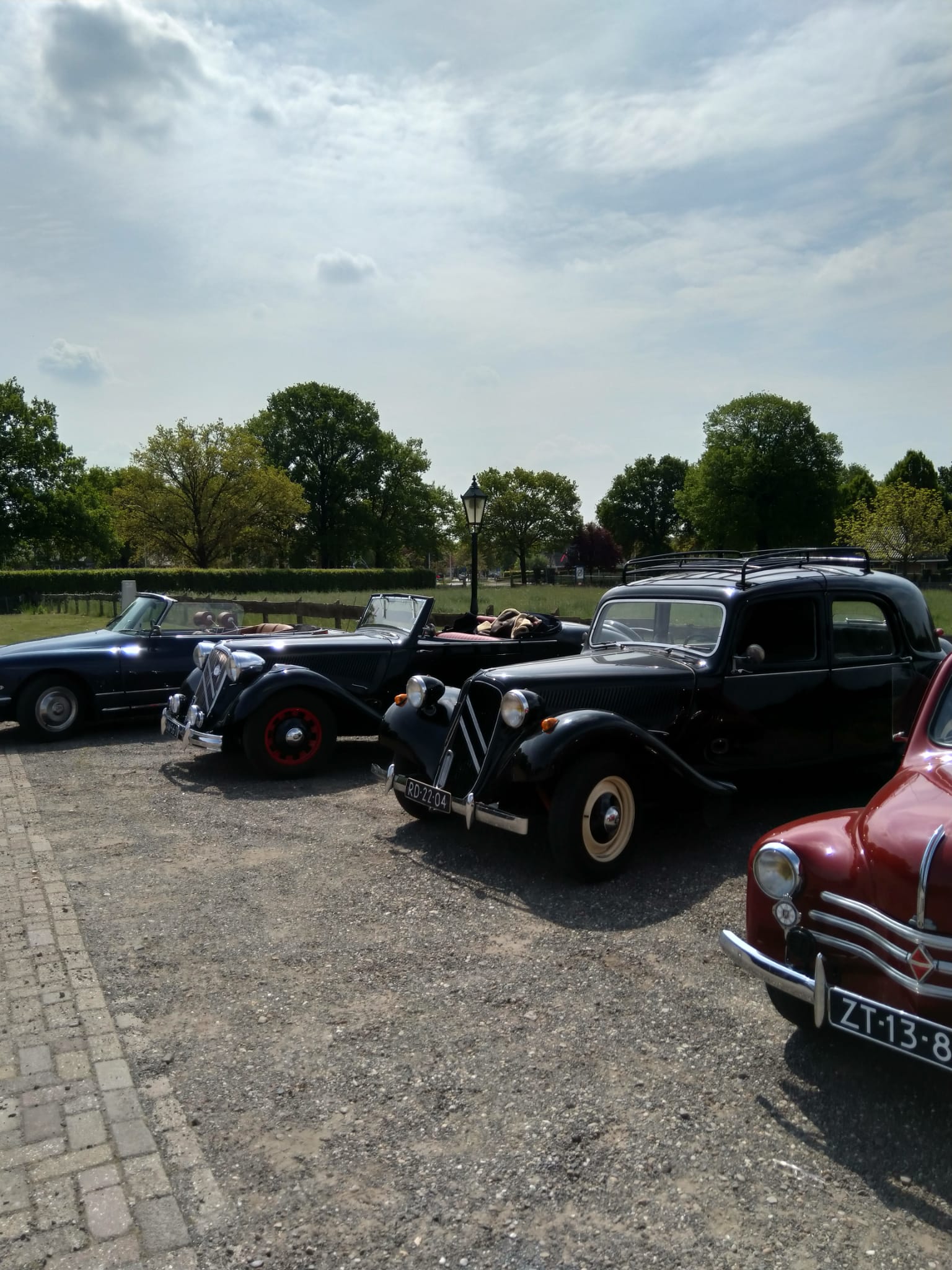 Na eerst een gezellige samenkomst in ons sleutelhonk “Samba” in Azelo met koffie en versnaperingen vertrokken we omstreeks half twaalf met elf bolides met stralend weer. De rit voerde ons langs prachtige Saksische boerderijen via beukenlanen en gortdroge en vooral stoffige zandweggetjes en ontelbare bruggetjes over allerlei slootjes en riviertjes.