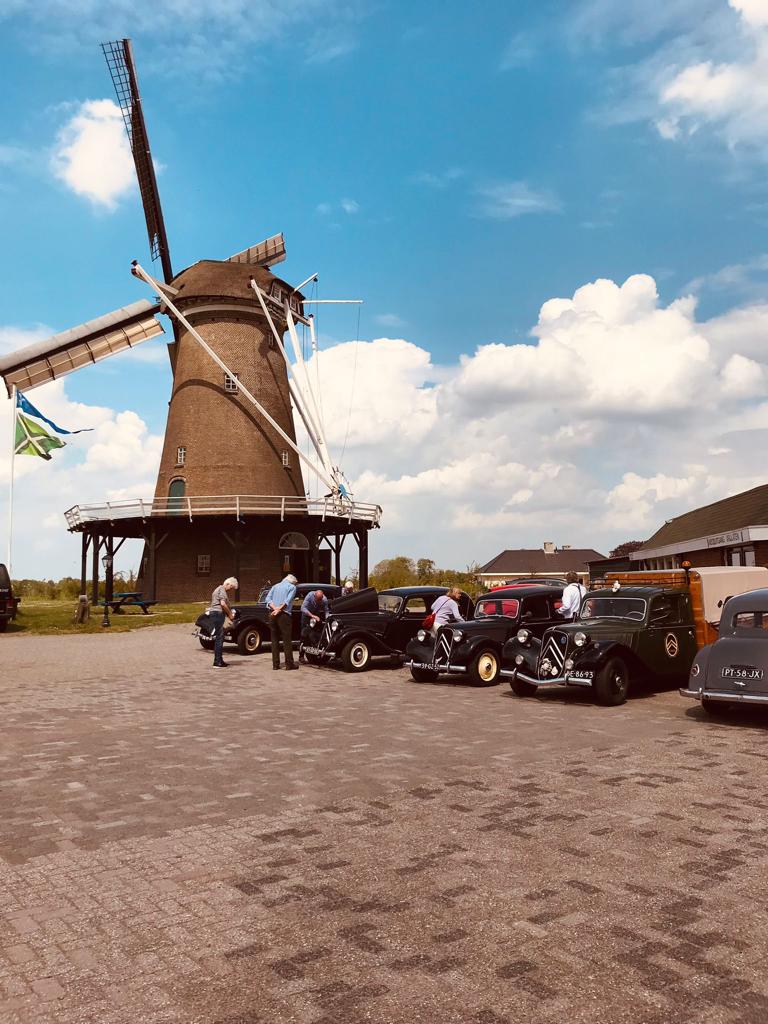 Geleidelijk gleden we de Achterhoek binnen met zijn eigen architectuur, de lichtglooiende weiden en akkers om de uiteindelijke bestemming te bereiken: een aardig restaurantje, gelegen net buiten Neede, op een heuvel met een heuse Hollandse molen die in de vrijwel windloze middag ook nog draaide!