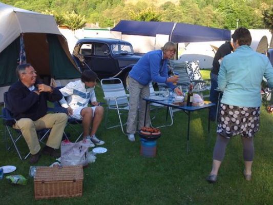 Het vorige verslag eindigde met een wens voor beter weer de volgende keer. Ik had om iets minder moeten vragen, want het was haast té warm afgelopen zaterdag. Net terug van vakantie besloot ik last minute toch maar aan te sluiten bij deze activiteit, het vertrekpunt was tenslotte toch om de spreekwoordelijke hoek. Ik had alleen geen tijd om de Traction nog op te halen in Azelo, dus men moest tegen een iets minder oude Citroën aan kijken. Ik heb me braaf achteraan uit het zicht van iedereen gehouden.