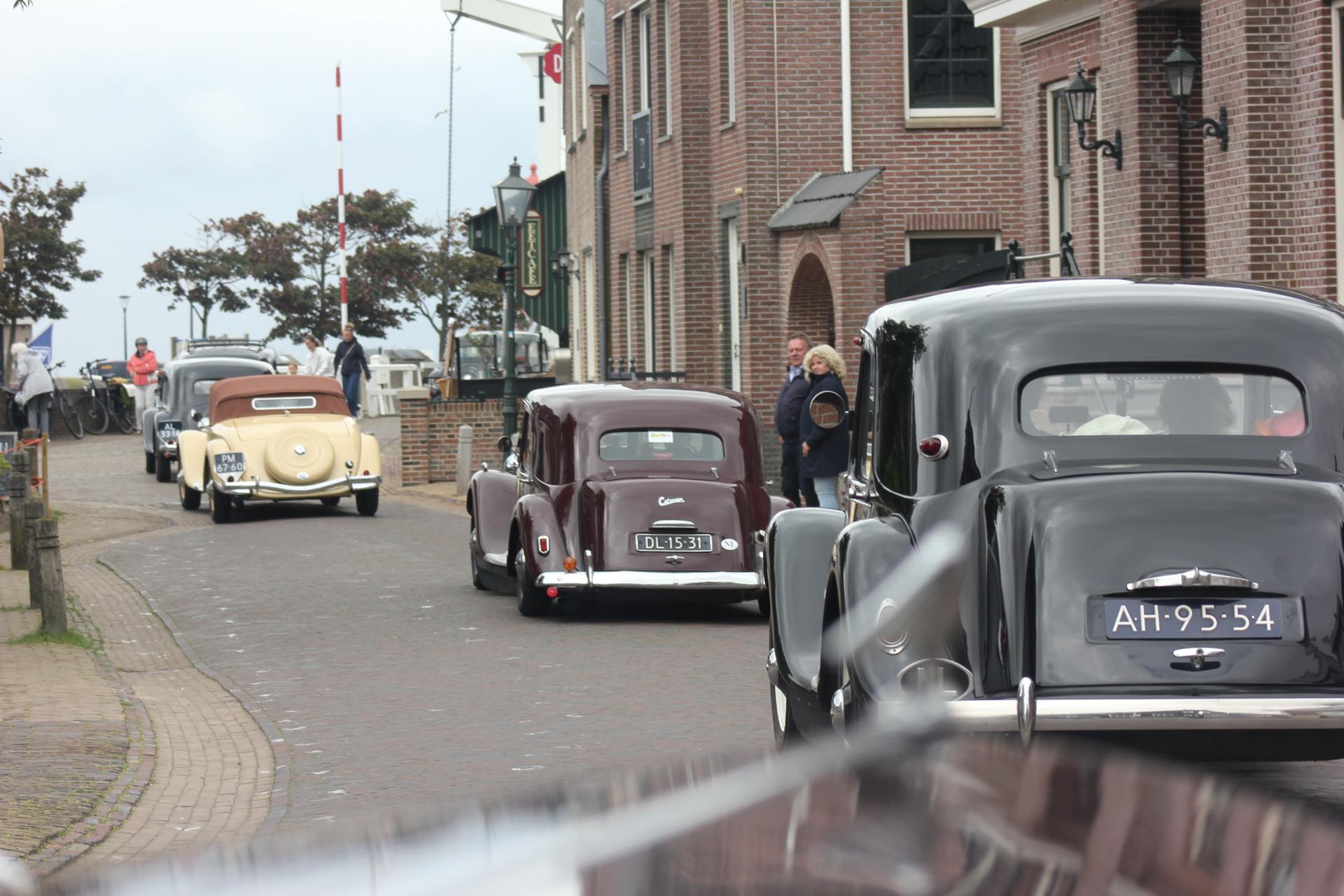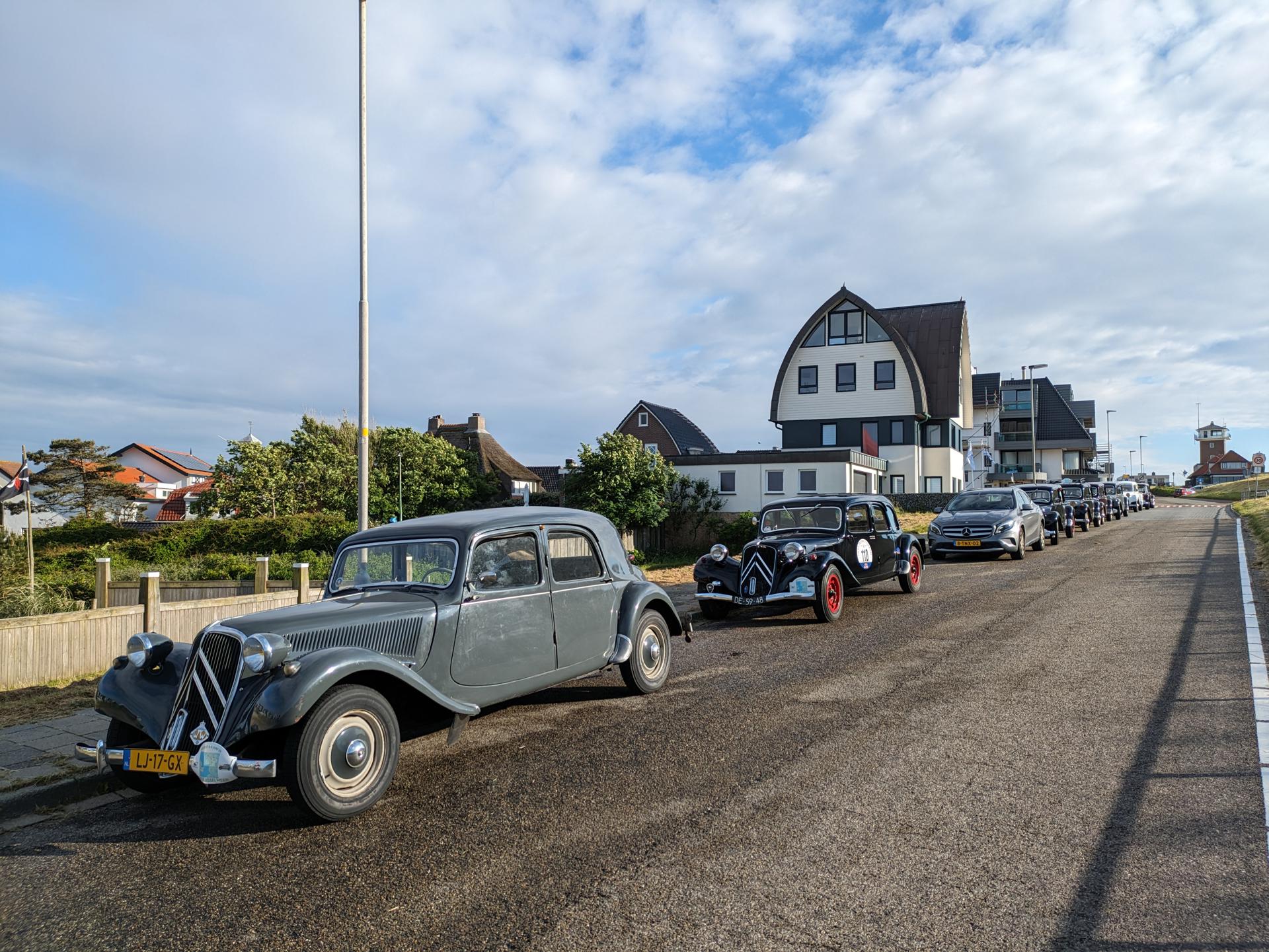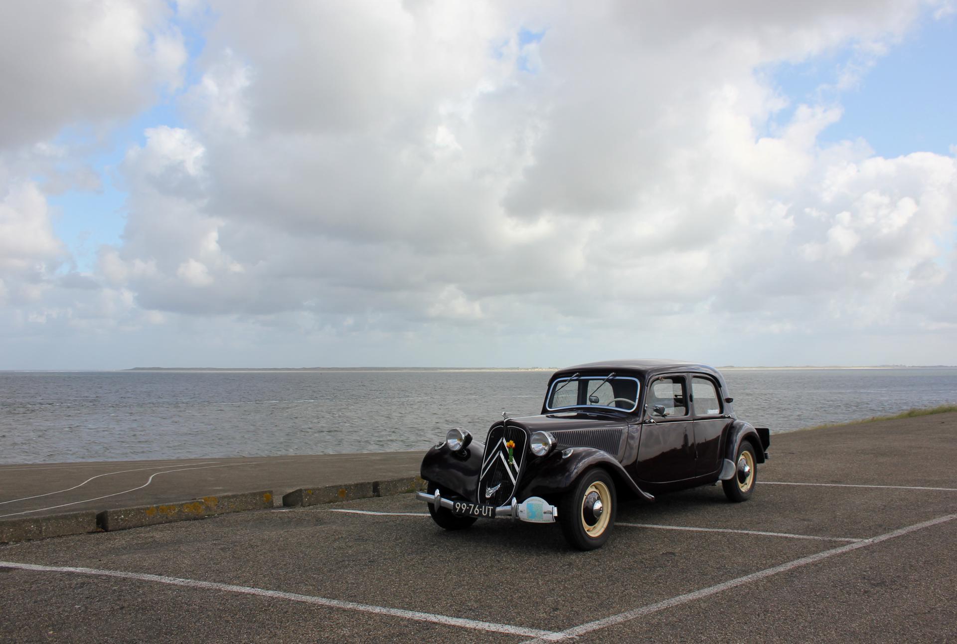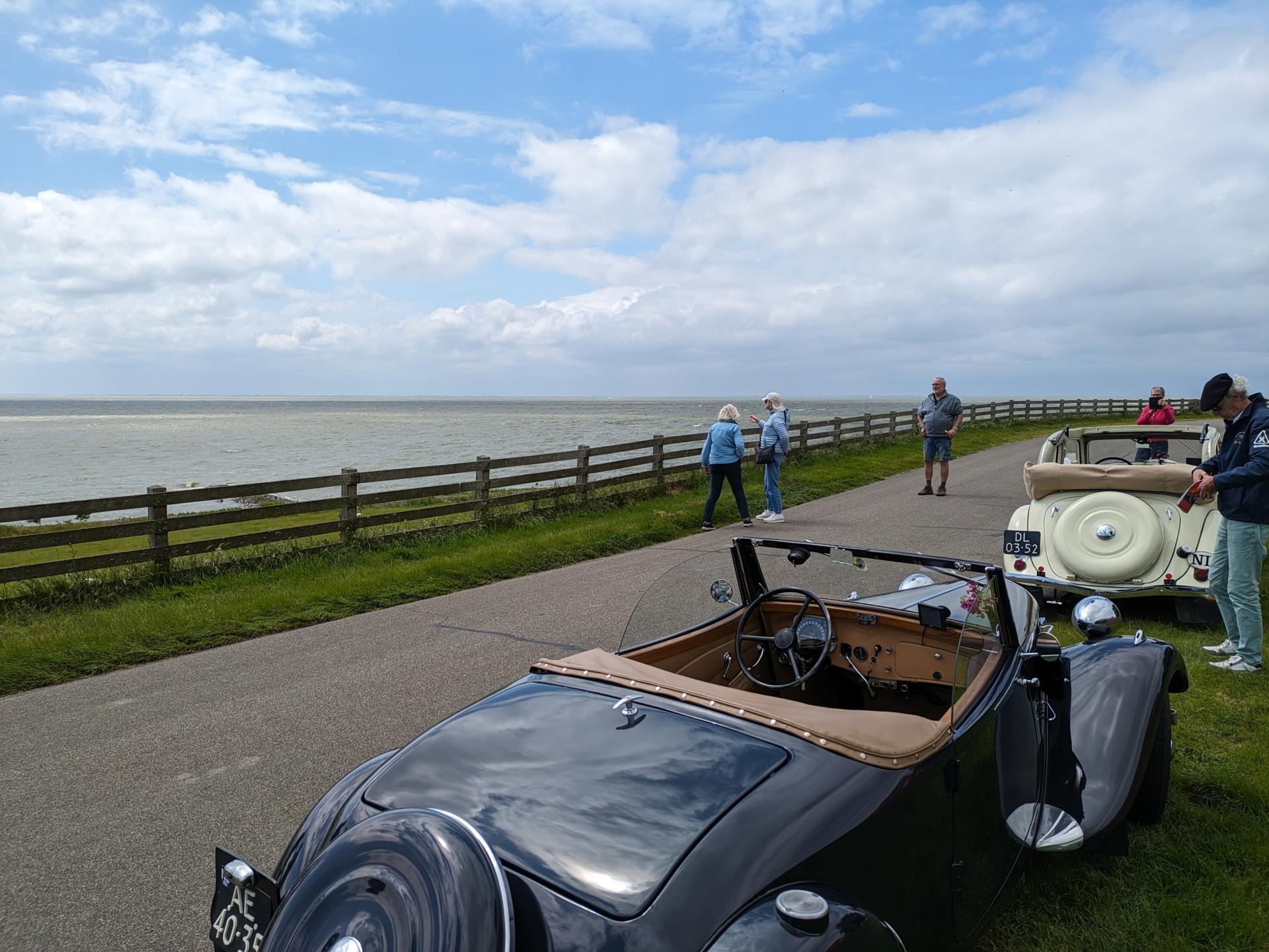 De drankjes smaakten en het eten erna net zo goed. Het wachten tussen de gangen werd verlicht door historie en anekdotes vanuit Oost-oprichter Benno en (al heel lang) lid Hans t.H. De avond was nog lang gezellig... Na een goede nacht slaap (en een paar baantjes in het zwembad voor sommigen) zaten we zondag op tijd aan het ontbijt met uitzicht op zee. Bij vertrek waren Mariëlle en ik nog niet genoeg uitgewaaid, dus wij zijn nog even naar Lange Jaap gelopen en hebben de Traction op de dijk gefotografeerd. Daardoor kwamen we pas bij Enkhuizen weer achterop bij de rest.