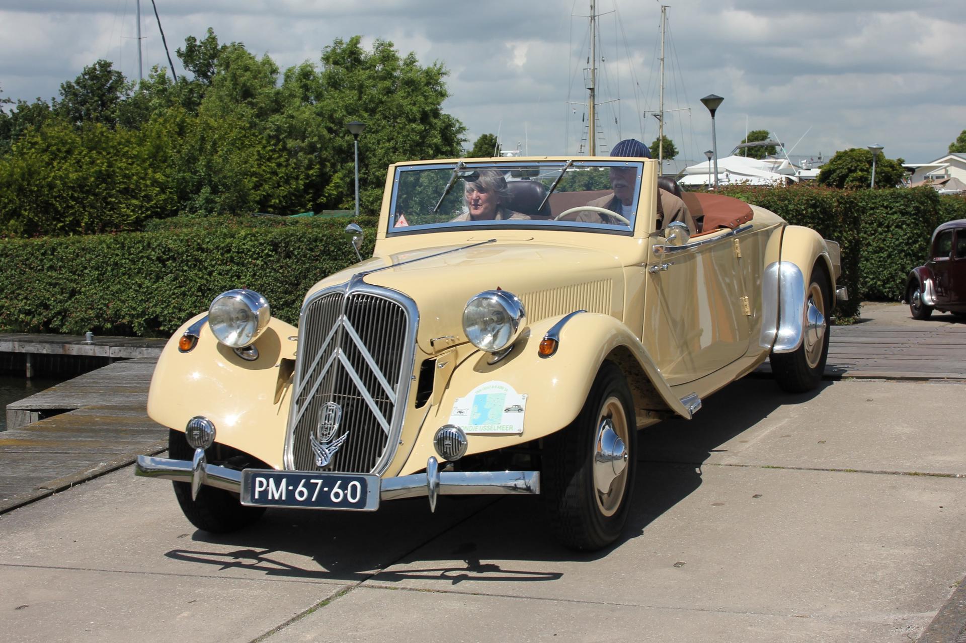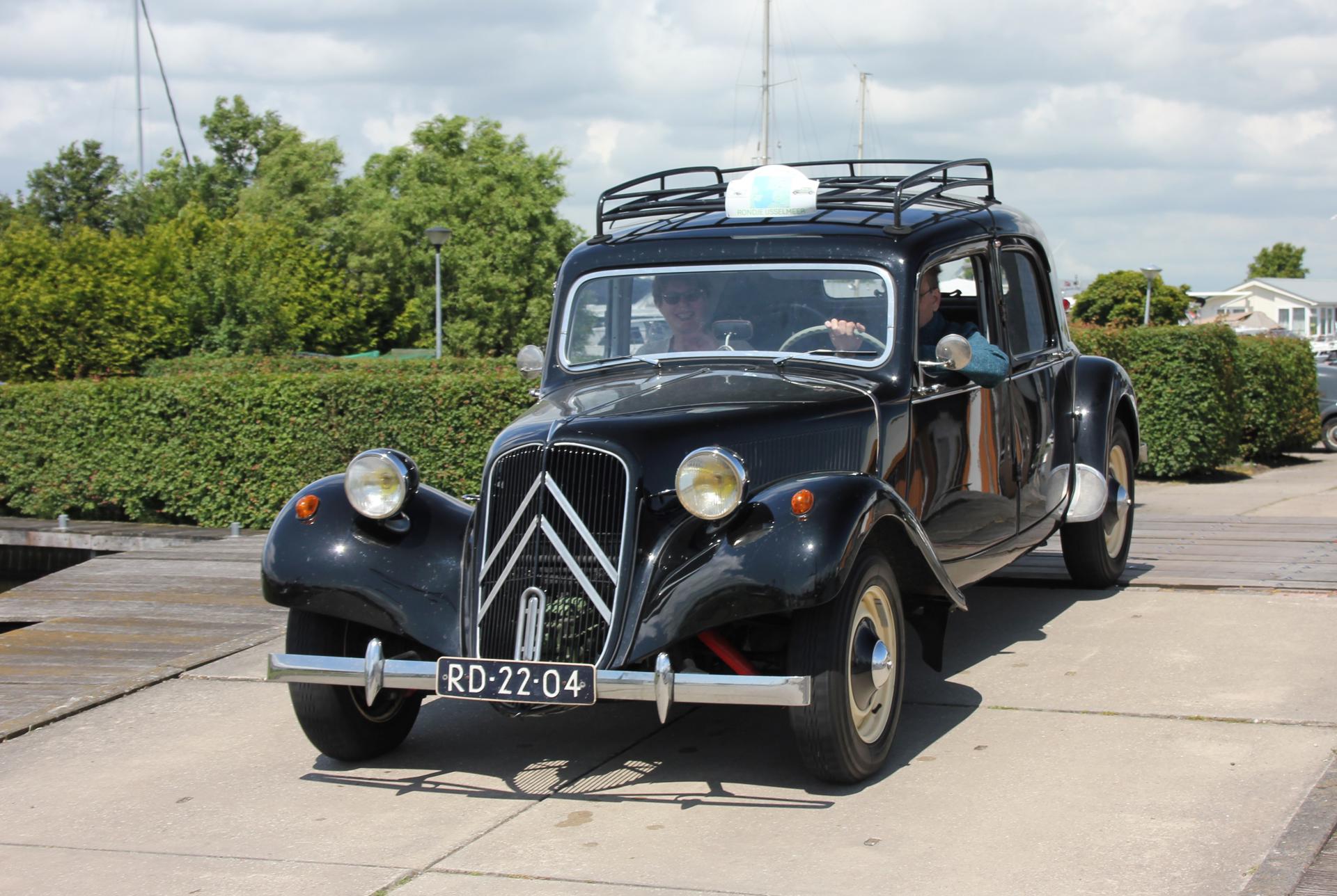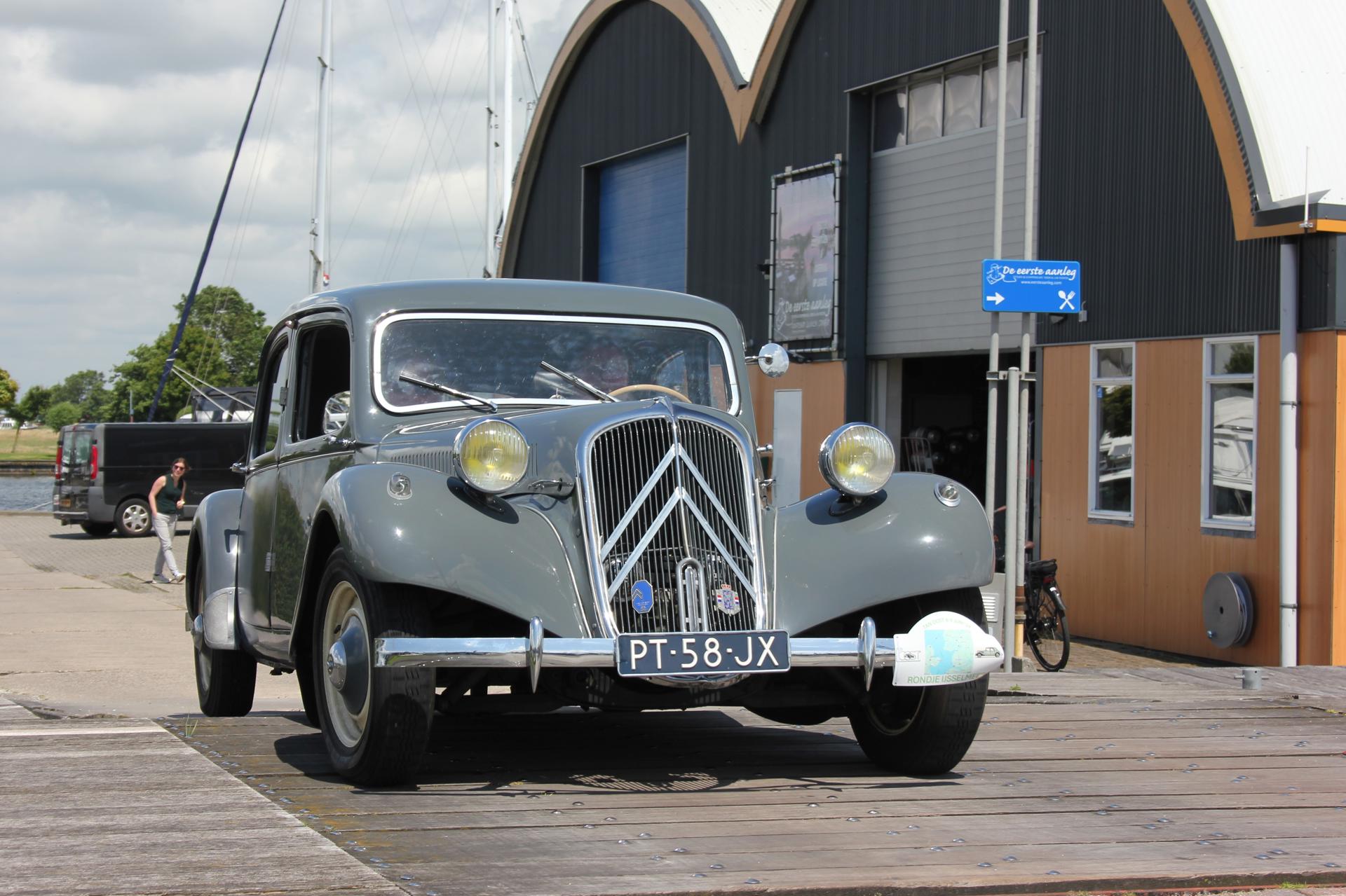 De drankjes smaakten en het eten erna net zo goed. Het wachten tussen de gangen werd verlicht door historie en anekdotes vanuit Oost-oprichter Benno en (al heel lang) lid Hans t.H. De avond was nog lang gezellig... Na een goede nacht slaap (en een paar baantjes in het zwembad voor sommigen) zaten we zondag op tijd aan het ontbijt met uitzicht op zee. Bij vertrek waren Mariëlle en ik nog niet genoeg uitgewaaid, dus wij zijn nog even naar Lange Jaap gelopen en hebben de Traction op de dijk gefotografeerd. Daardoor kwamen we pas bij Enkhuizen weer achterop bij de rest.