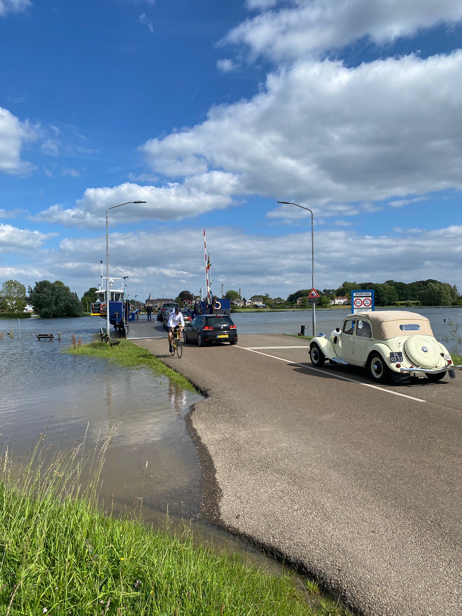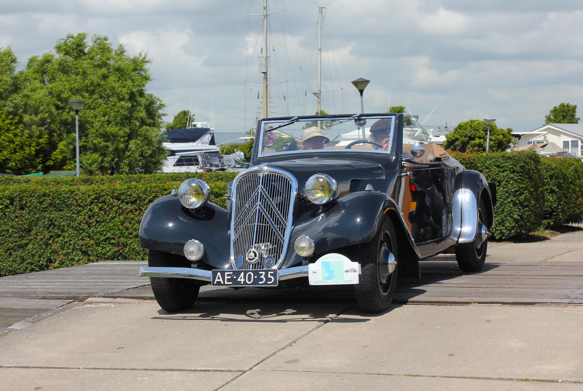 Hoe dan ook, op zaterdagochtend verzamelden we op tijd in Raalte, om richting Urk te vertrekken voor koffie. Blijkbaar zijn ze in Urk niet van vroeg opstaan, want om half 11 was het lastig om een open gelegenheid te vinden waar we koffie konden drinken. Dat lukte uiteindelijk, mits we op het terras plaatsnamen. Met uitzicht op de haven was het beter uit te houden dan we van tevoren hadden ingeschat. Maar we moesten door. Op naar Lemmer voor de lunch. De Traction van Hans C. had wat aanmoediging nodig (enkele duwtjes van ons en omstanders), maar dat was te repareren met een extra massadraadje tussen bobine en accu. Wederom met uitzicht op water konden we van het twaalfuurtje genieten.
