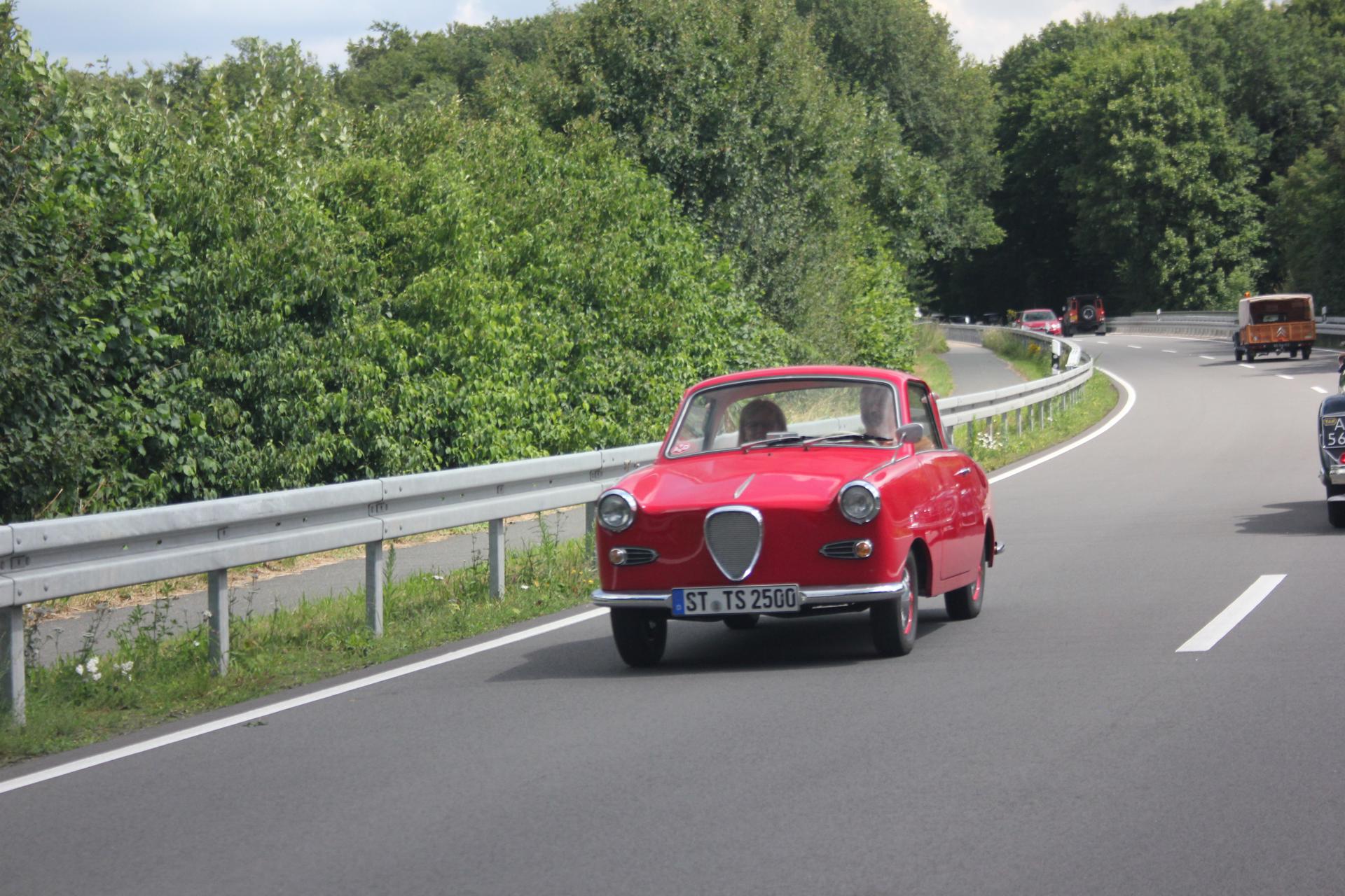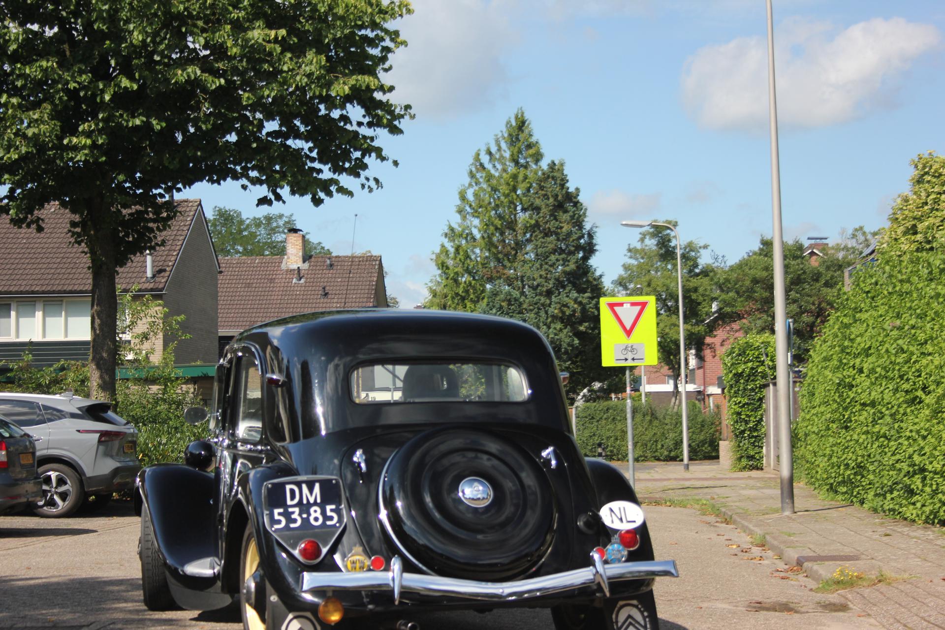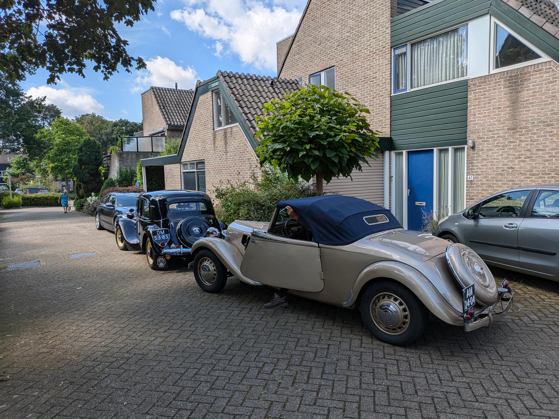 Het blijft leuk om te ervaren hoe kort over de grens je al ervaart dat je in het buitenland bent. Alles oogt anders. De verkeerslichten onderweg zaten redelijk mee, alleen Frans liep even wat achterstand op omdat zijn eerste versnelling er geen meer in had. Dat wordt intussen gerepareerd, heb ik vernomen. En onderweg kwamen we zelfs nog een onbekendde Nederlandse Traction tegen, die ons even volgde maar helaas snel afhaakte. Ik had wel even kennis willen maken.