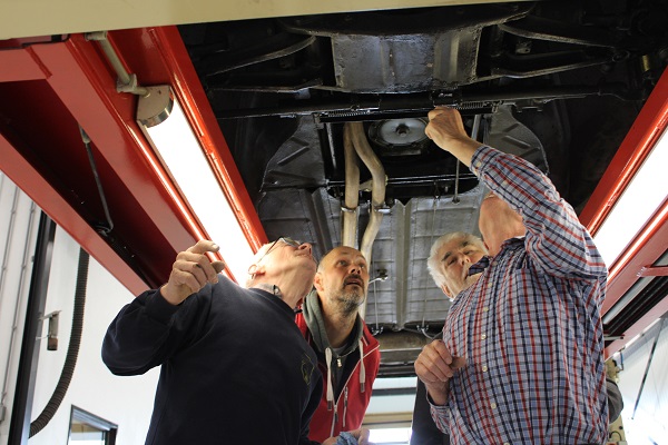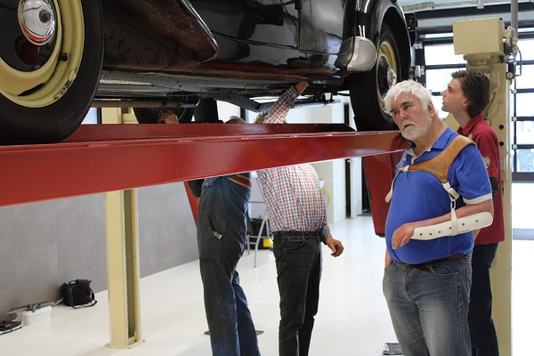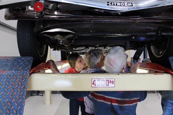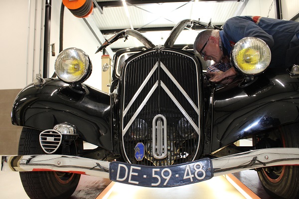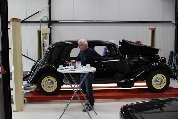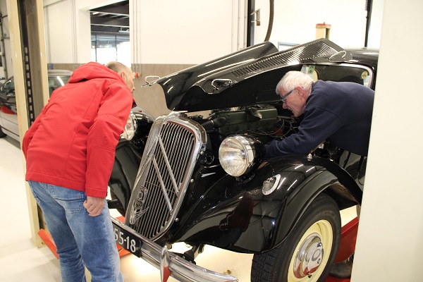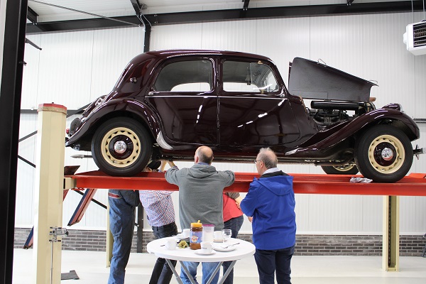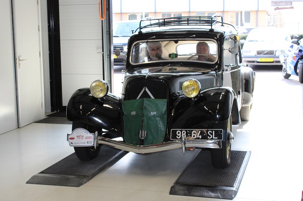 Locatie van deze keuring was wederom het jonge bedrijf IBALO Luxuy Sportscars in Goor. Met andere woorden, we konden met onze Tractions weer tussen de Ferrari’s terecht, een bijzondere setting. De goed voorziene en schone werkplaats voldoet perfect voor onze keuringen. Hans, Henny en Frits lieten geen onderdeel aan de aandacht ontglippen, terwijl de gastheer van IBALO ons voorzien hield van koffie en ook de inmiddels traditionele citroentaart voor ons aansneed. Ook bijgevoegde foto’s zijn door hem gemaakt.