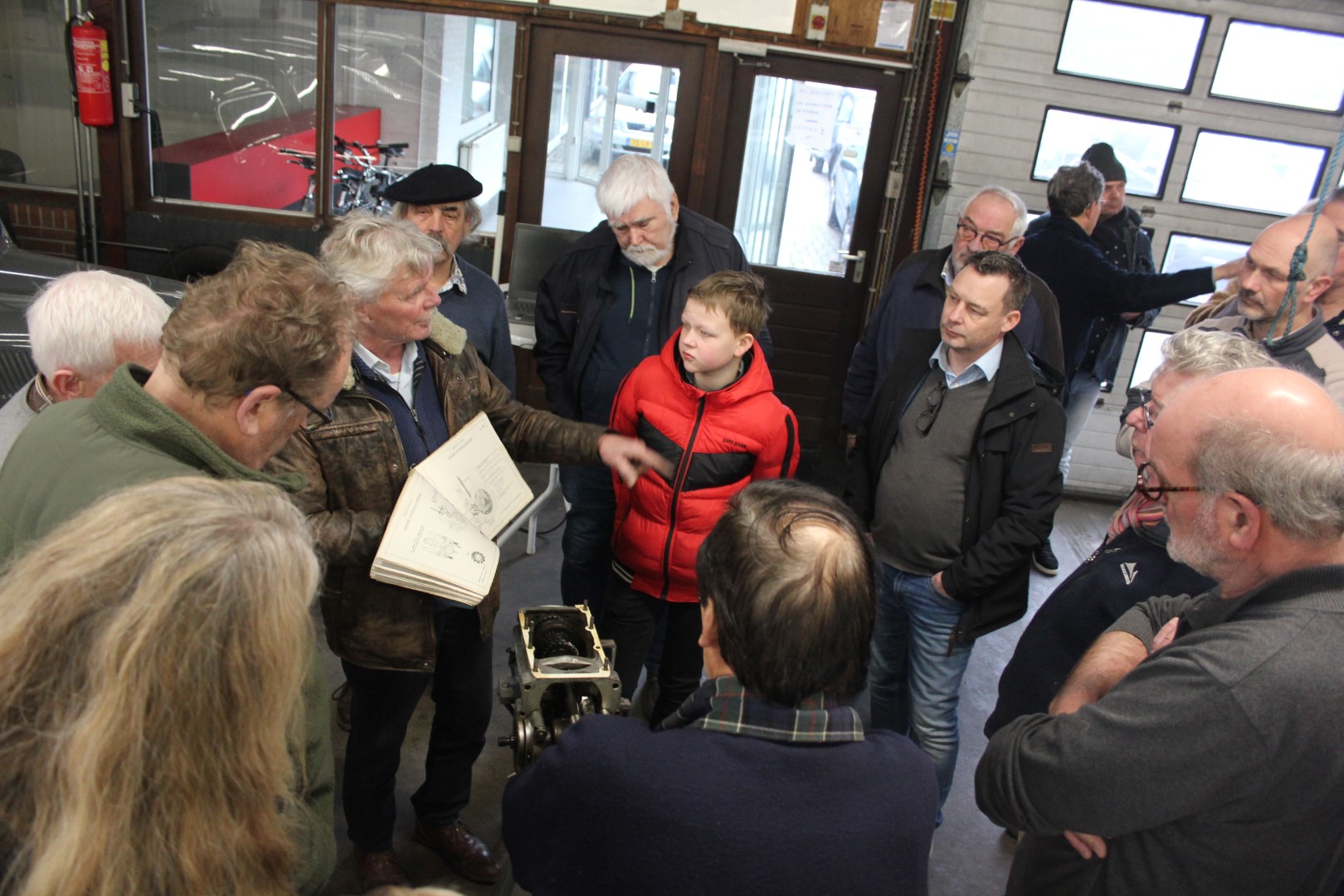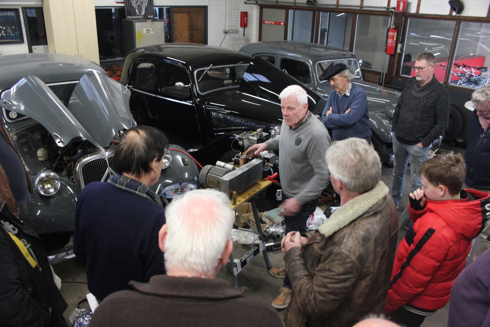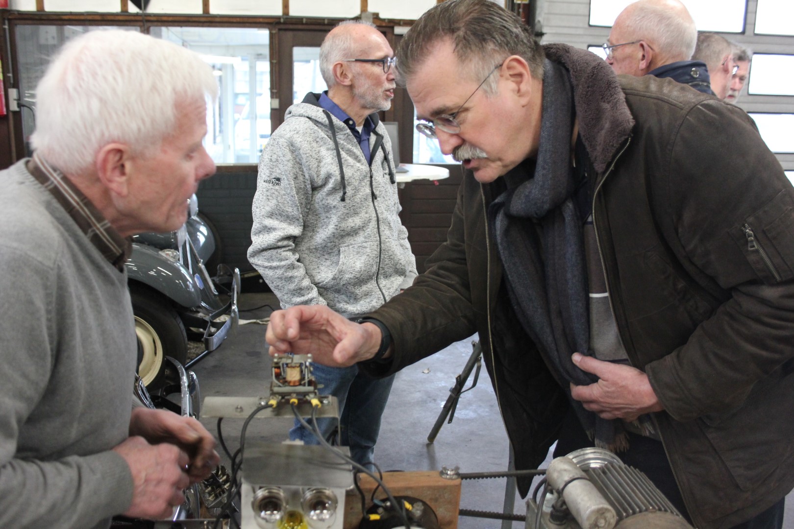 Hennie de Jong had deze ochtend de verwarming al vroeg opgestookt. Henny van Zandvoort had een mooi programma voorbereid dat bestond uit: wetenswaardigheden rond de versnellingsbak, en een kijkje in de analoge spanningsregelaar van een Traction. Hans mocht het uitleggen…
