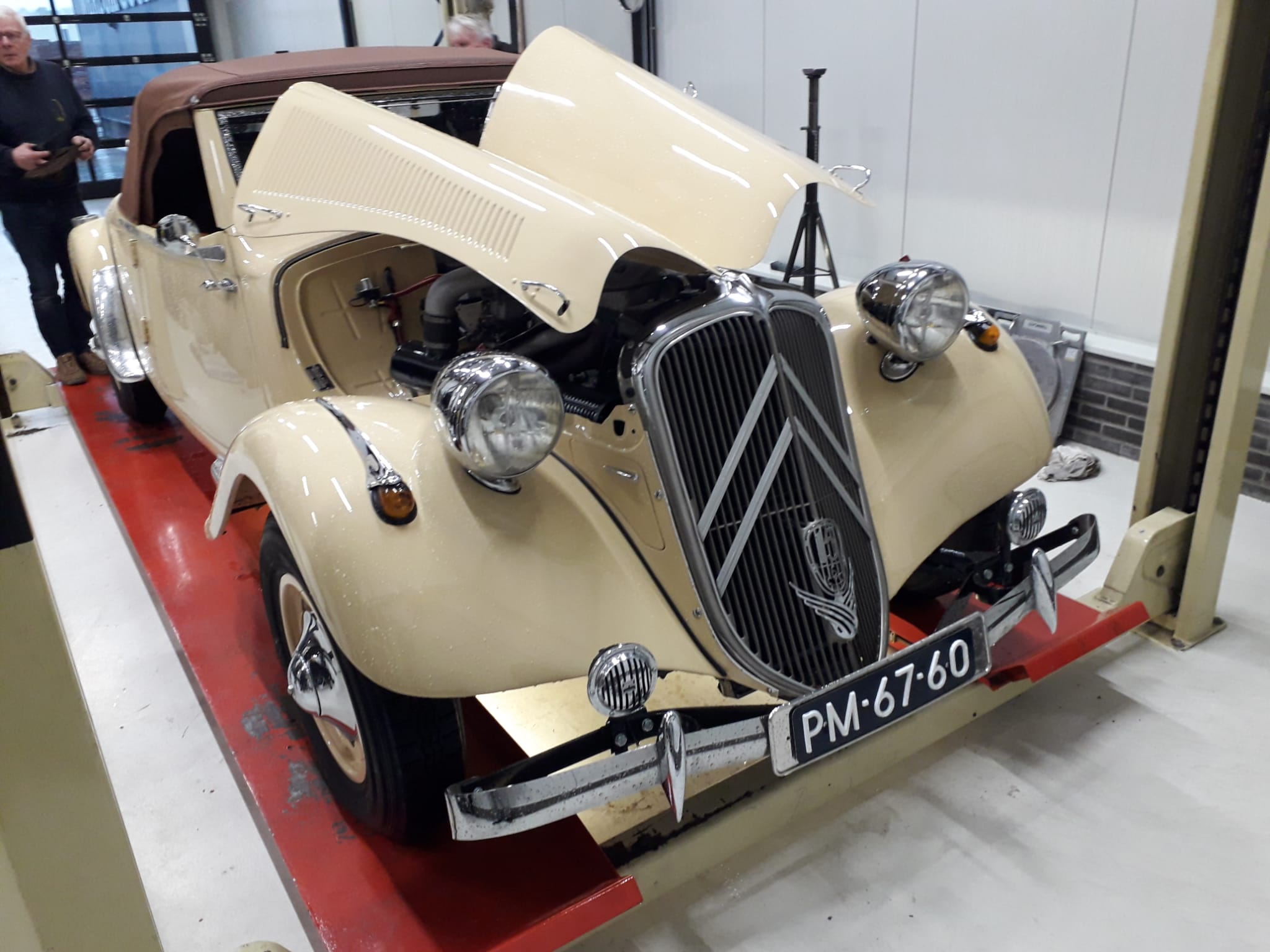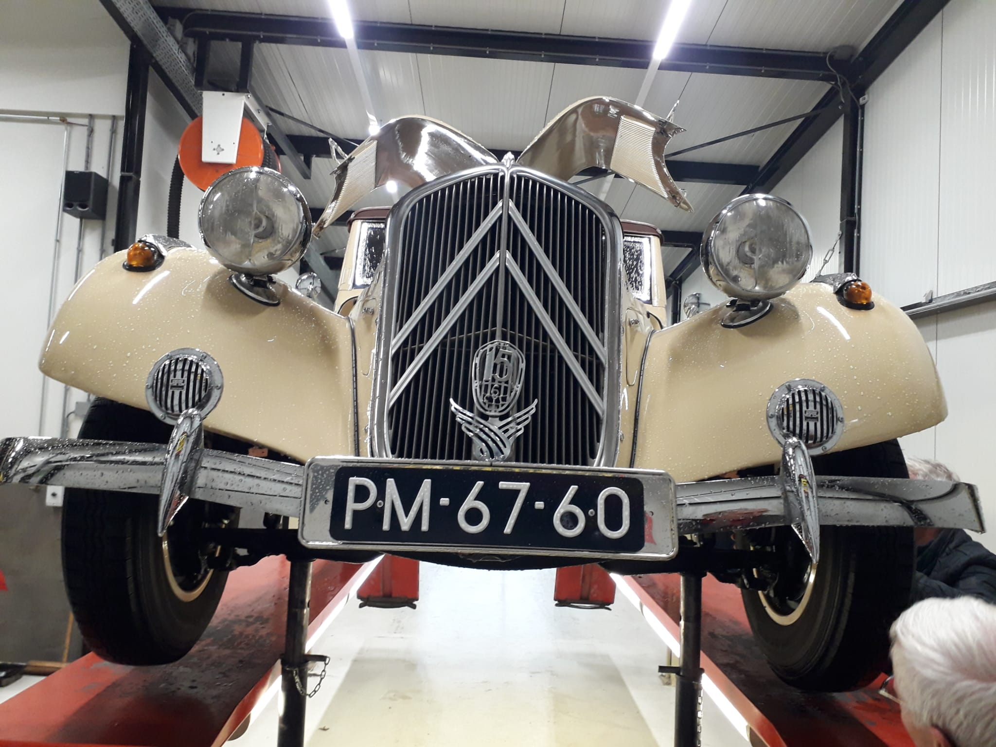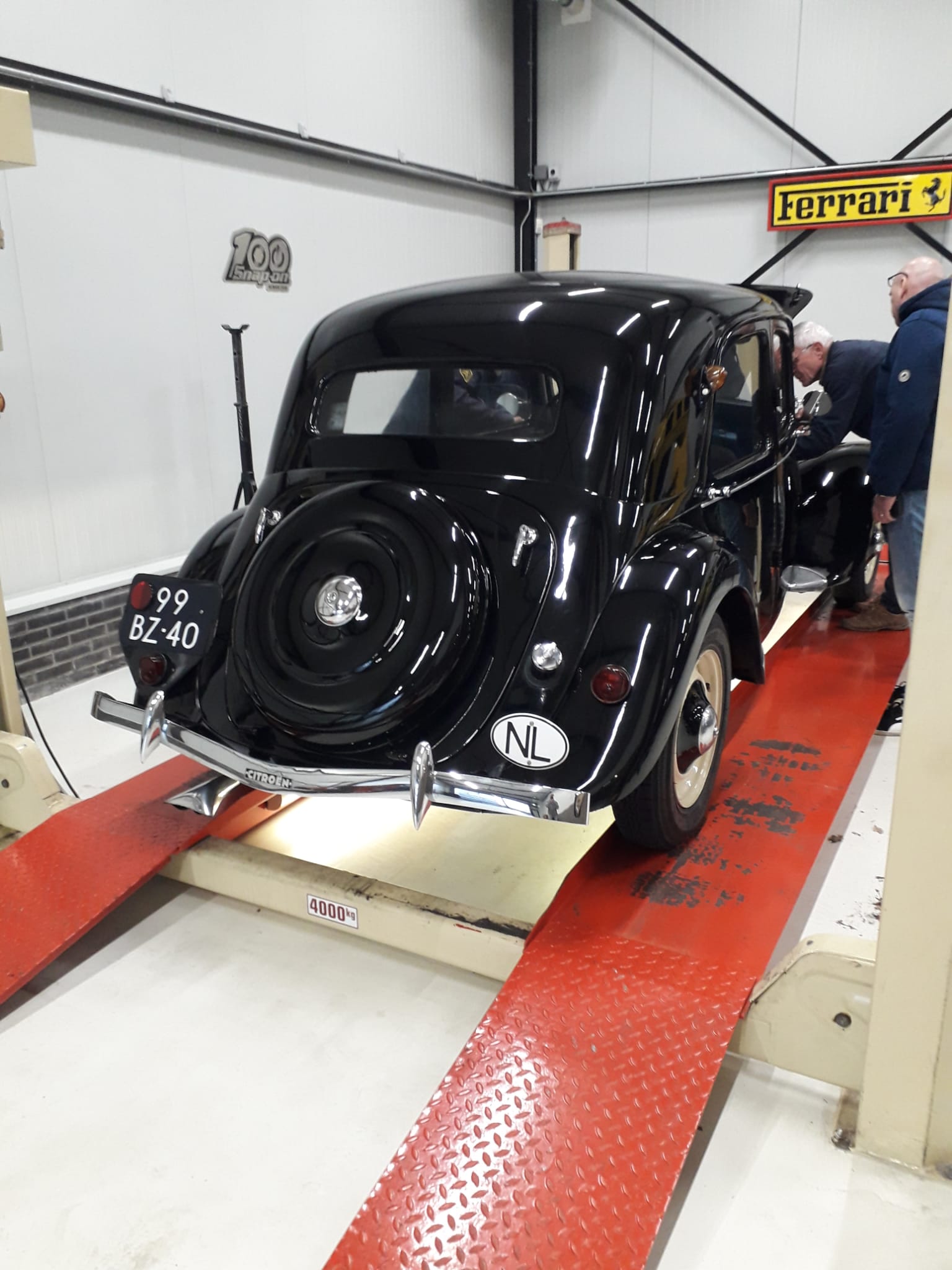 De dag begon qua weer redelijk, zelf ben ik droog met de Traction heen en weer gekomen. Dat geluk had niet iedereen. De waterdichtheid van de Tractions die 's middags aan de beurt waren is op de proef gesteld. Ik hoorde dat niet elke ruitenwisser die nattigheid heeft overleefd... Maar dan zijn details. De technische heren hebben alle auto's onderworpen aan een testrit, een remmentest en een uitgebreide visuele controle. Daarna maken ze lijsten met benodigde reparaties en adviespunten, die de eigenaren van de gekeurde auto's nog zullen ontvangen. De lijsten worden ook doorgegeven aan het landelijk bestuur van TAN, zodat men een beeld krijgt van de staat van de auto's binnen de club. Dan kunnen ze bijvoorbeeld instructies geven hoe je bepaalde zaken controleert en repareert, of bepaalde onderdelen laten maken. Dat zijn dus nuttige statistieken. Voor de eigenaren van deze auto's is hun eigen lijstje het meest belangrijk: De punten oplossen en niet terug laten komen bij een volgende controle, dat is het doel!