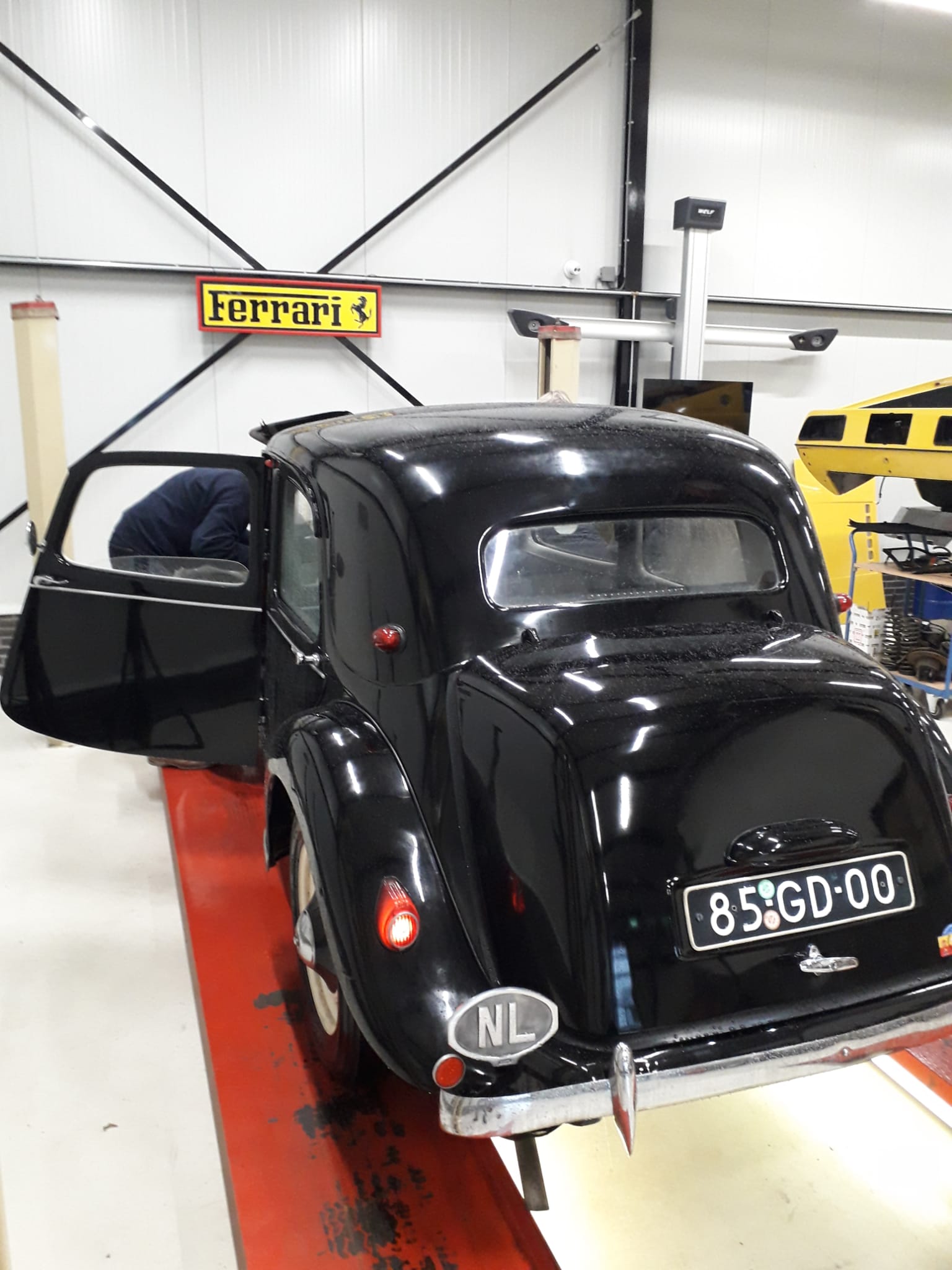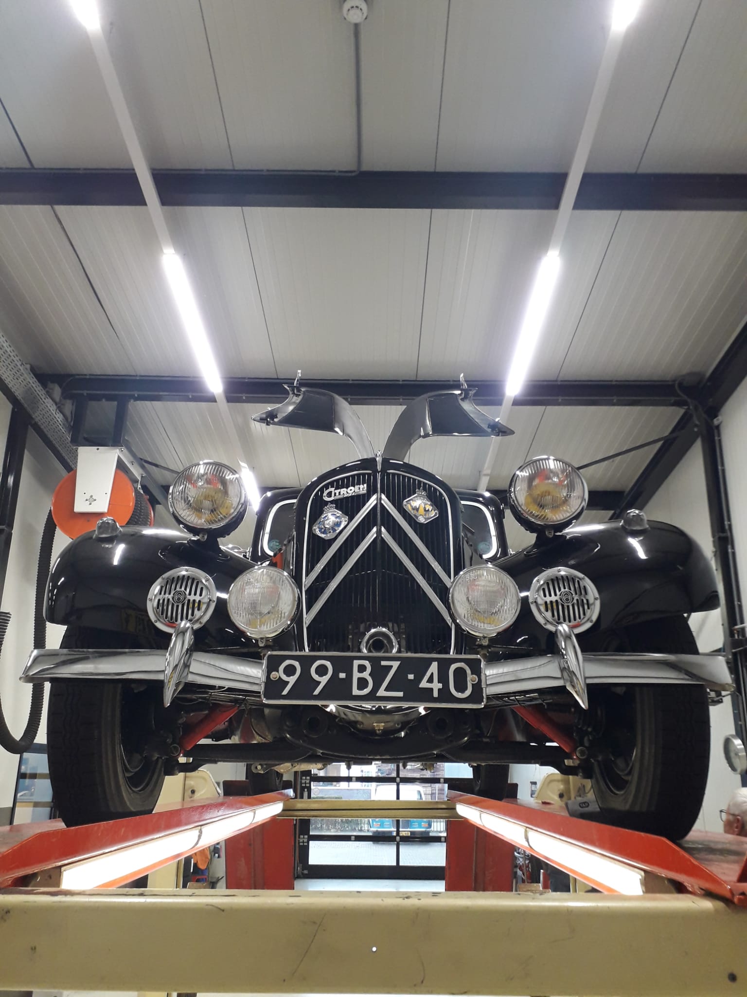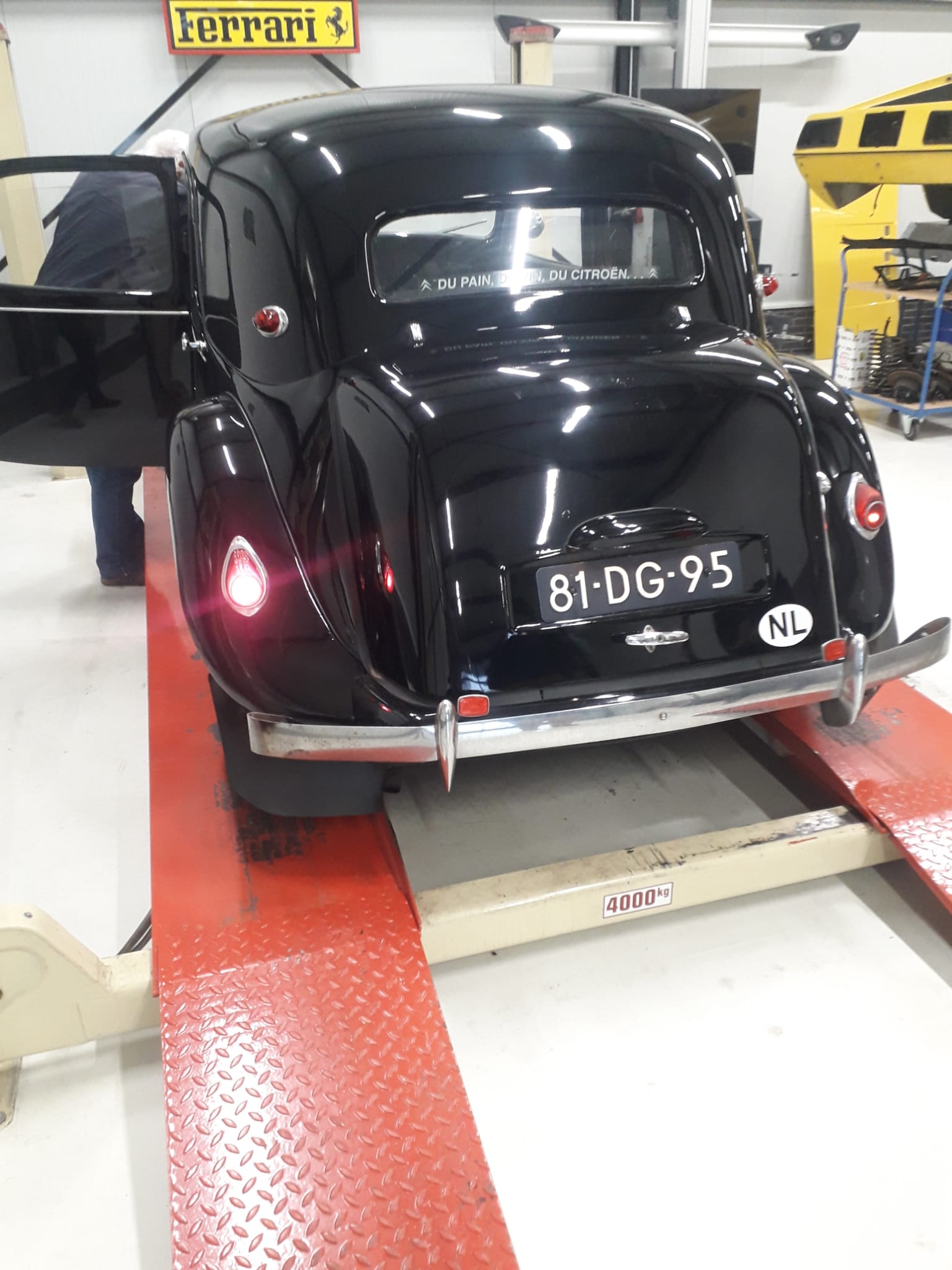 De dag begon qua weer redelijk, zelf ben ik droog met de Traction heen en weer gekomen. Dat geluk had niet iedereen. De waterdichtheid van de Tractions die 's middags aan de beurt waren is op de proef gesteld. Ik hoorde dat niet elke ruitenwisser die nattigheid heeft overleefd... Maar dan zijn details. De technische heren hebben alle auto's onderworpen aan een testrit, een remmentest en een uitgebreide visuele controle. Daarna maken ze lijsten met benodigde reparaties en adviespunten, die de eigenaren van de gekeurde auto's nog zullen ontvangen. De lijsten worden ook doorgegeven aan het landelijk bestuur van TAN, zodat men een beeld krijgt van de staat van de auto's binnen de club. Dan kunnen ze bijvoorbeeld instructies geven hoe je bepaalde zaken controleert en repareert, of bepaalde onderdelen laten maken. Dat zijn dus nuttige statistieken. Voor de eigenaren van deze auto's is hun eigen lijstje het meest belangrijk: De punten oplossen en niet terug laten komen bij een volgende controle, dat is het doel!