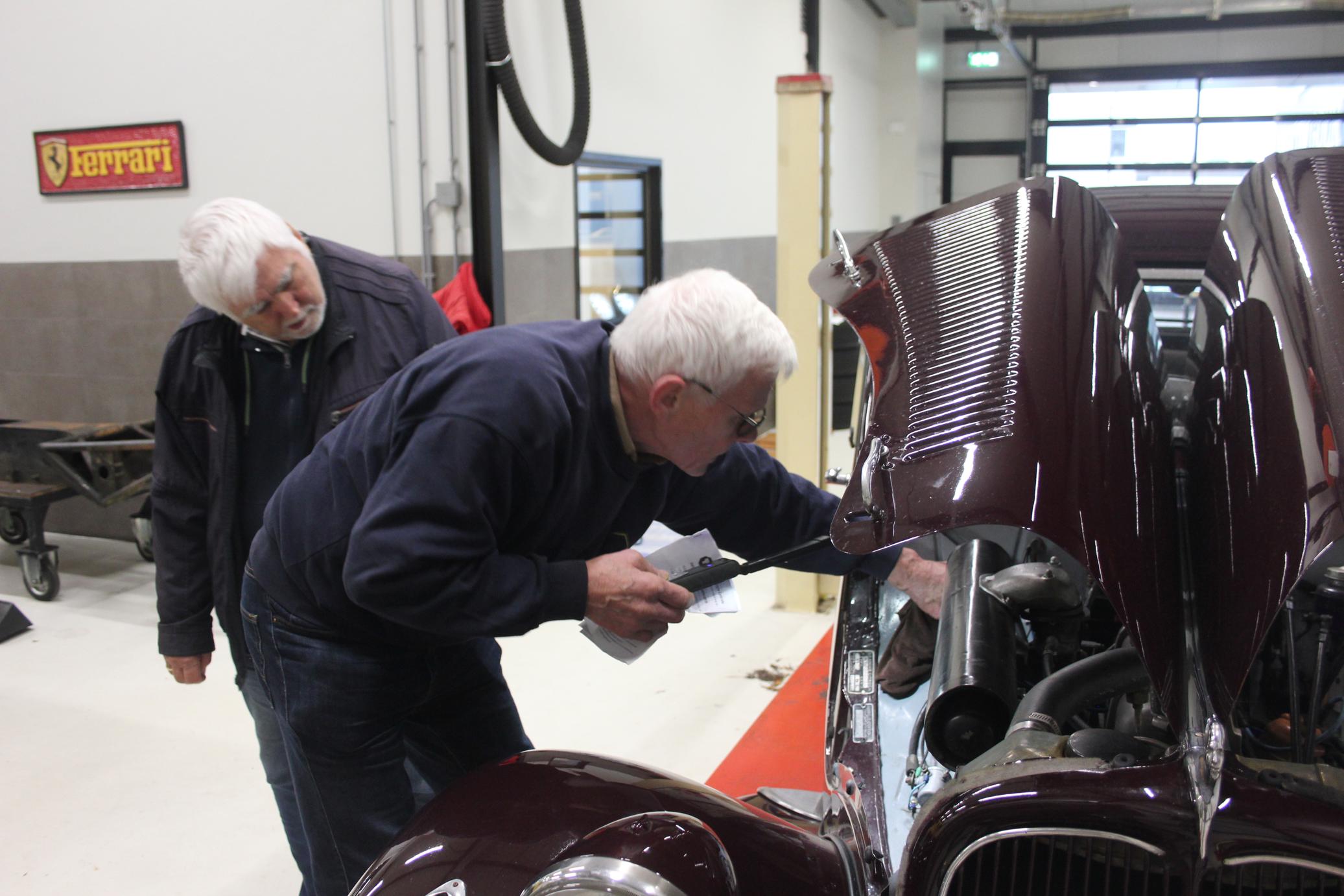 Zoals in het vorige artikel aangekondigd volgde er een tweede datum met Traction Technische Controles (TTC's). Dit keer geen ochtend, maar een hele dag! Hans, Henny, Frits en Wilbert stonden vroeg gereed bij IBALO Sportscars in Goor om de Tractions te ontvangen. Stef was te vroeg voor zijn keuring, wat handig bleek omdat ondergetekende, die eigenlijk als eerste aan de beurt was, startproblemen had. Met hulp van startkabels aan de moderne (leen)auto wist ik iets later alsnog te arriveren. En Frans mag dan geen voorzitter meer zijn, zo dicht bij huis kan hij het niet laten om een oude verantwoordelijkheid op te pakken: Hij regelde de taart! De technische commissie moet tenslotte wel op de been blijven.