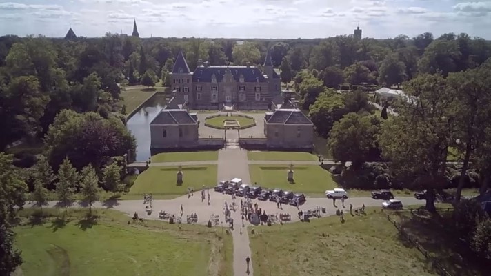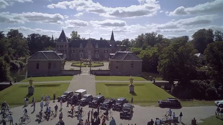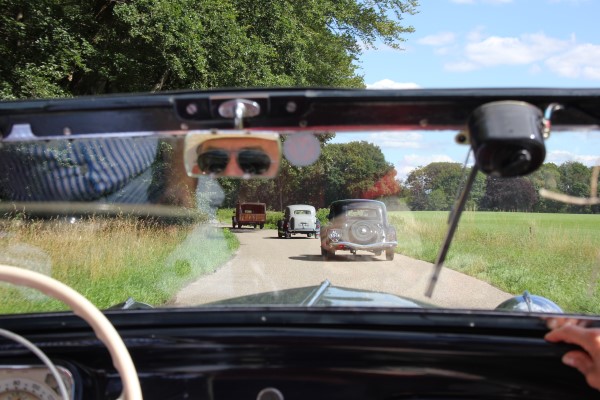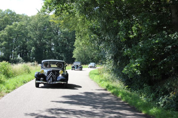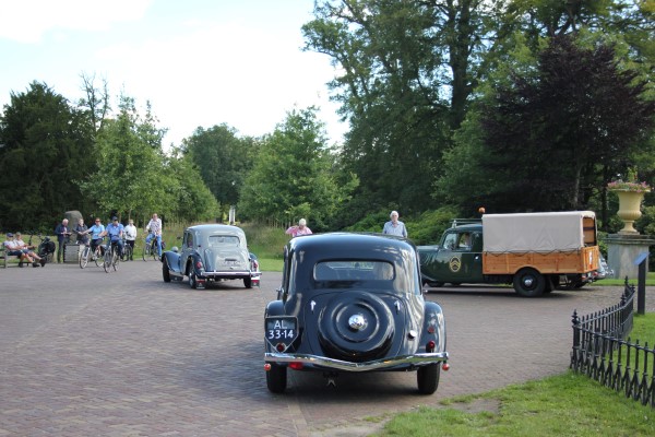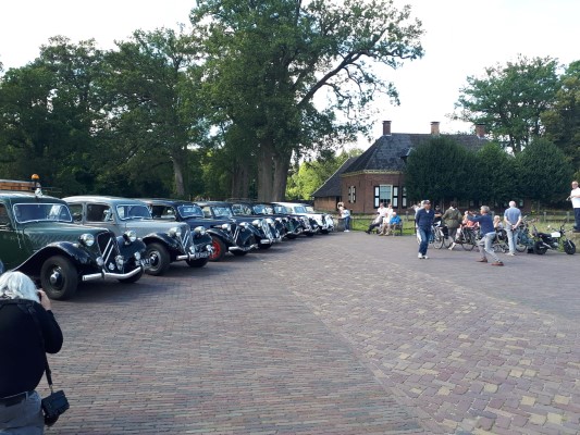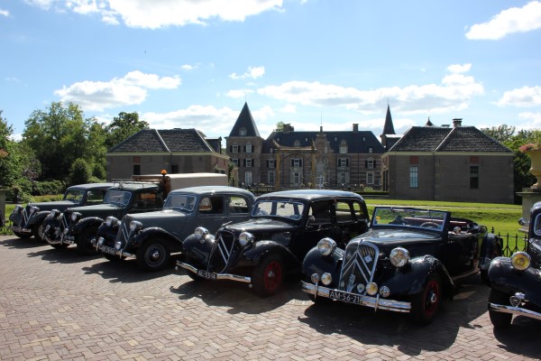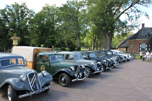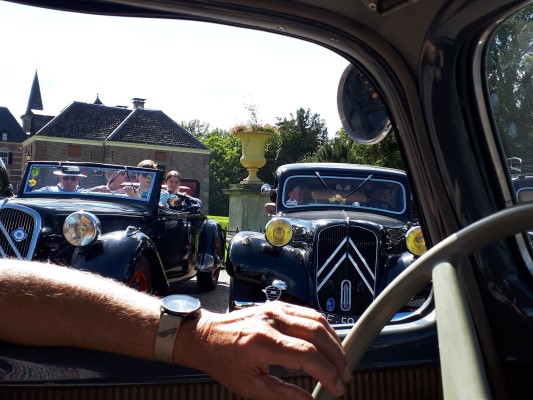 De sliert Tractions trok veel bekijks, menig fietser stapte af om ons na te staren en veel telefoons werden uit de broekzak getrokken voor het fotografisch bewijs van deze rijdende museumwaardige voertuigen. De fotolocatie waar we naartoe reden (zelfs over onverharde wegen) bleek het kasteel Twickel te zijn. Hier werden de Tractions onder grote belangstelling in een rij opgesteld. De drukte maakte het maken van foto’s niet eenvoudig, maar ik heb mijn best gedaan. Een toevallige voorbijganger met een camera op een drone heeft ons ook nog wat foto’s gestuurd, erg leuk!