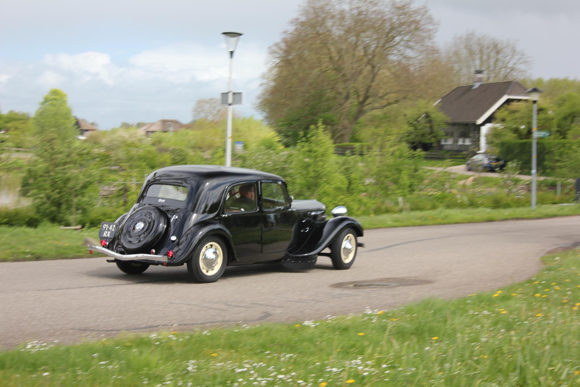 Al met al staat daar dus een bezienswaardigheid die je gezien moet hebben, als liefhebber van Frans oud staal. Daarom togen 8 Tractions en 1 DS op 20 april vanuit het oosten van het land naar Buren. Enkele auto's vertrokken vanuit Twente en pikten in Salland nog wat anderen op, een andere groep verzamelde zich in de Achterhoek om bij Arnhem aansluiting te vinden bij de Twentse groep. Zelf kwam ik iets later aan, doordat mijn gereviseerde motor nog geen snelwegkilometers mocht maken.